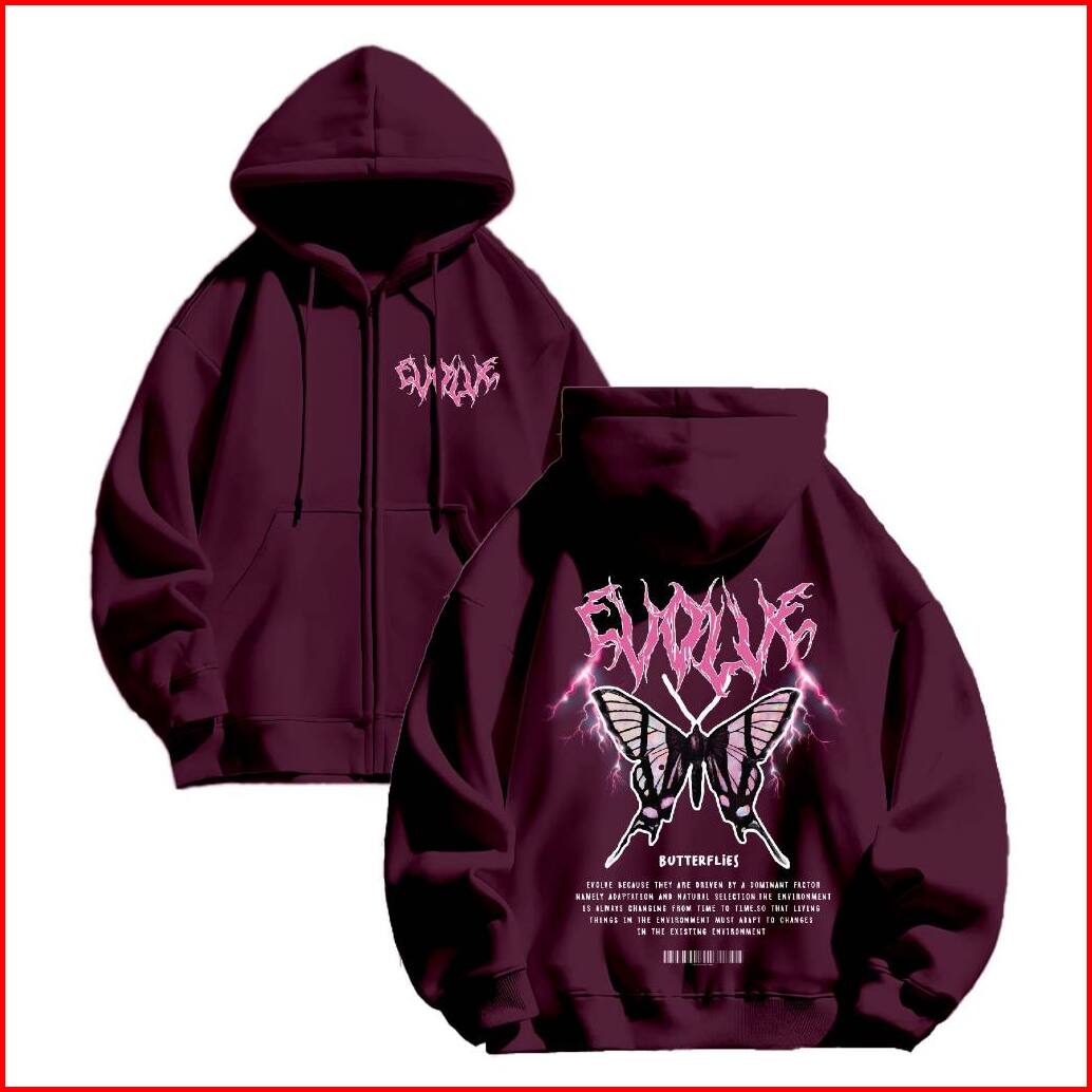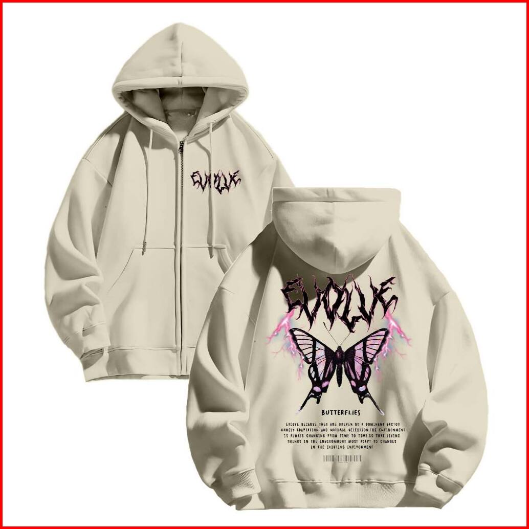 Hoodie Jaket Zipper Jyb Oversize Evolve Sablon Size M-xxl Pria Wanita