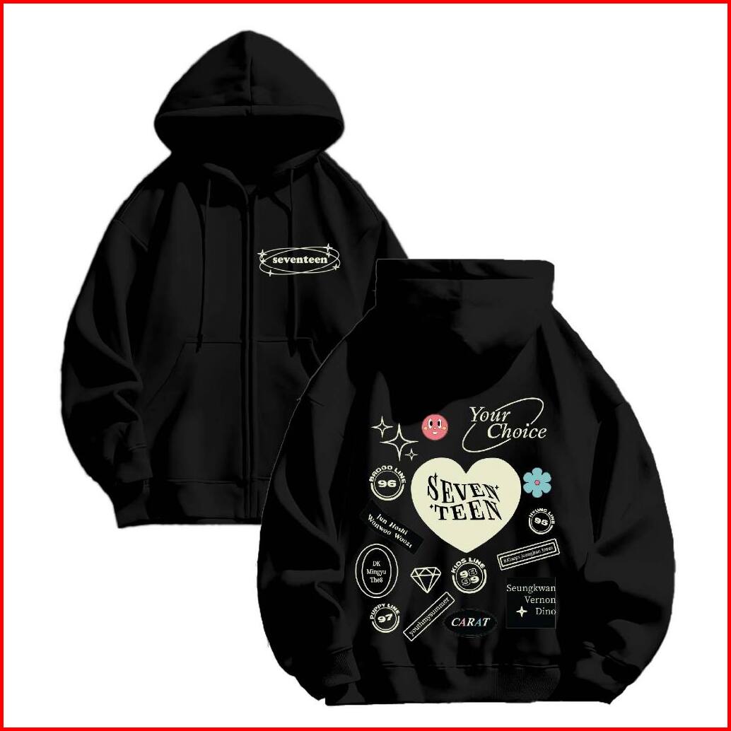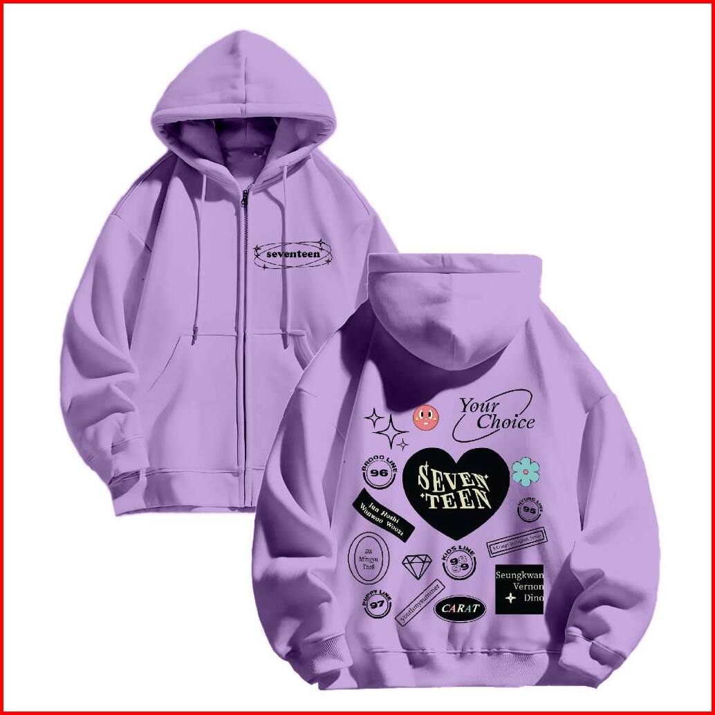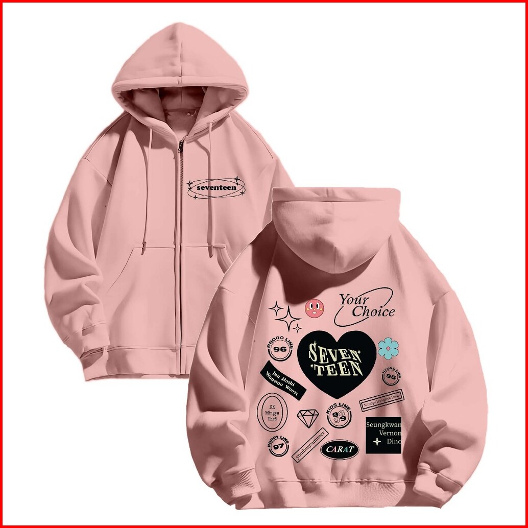 Hoodie Zipper Jaketwanita Sweclo.id Oversize Carat Seventeen Sablon M-xxl Pria Wanita 280gsm