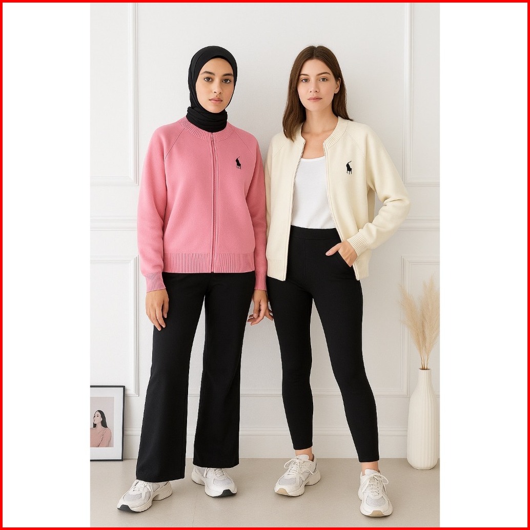 Dailyofprincess Nova Jaket Rajut Wanita Rajut Bordir Kuda Resleting