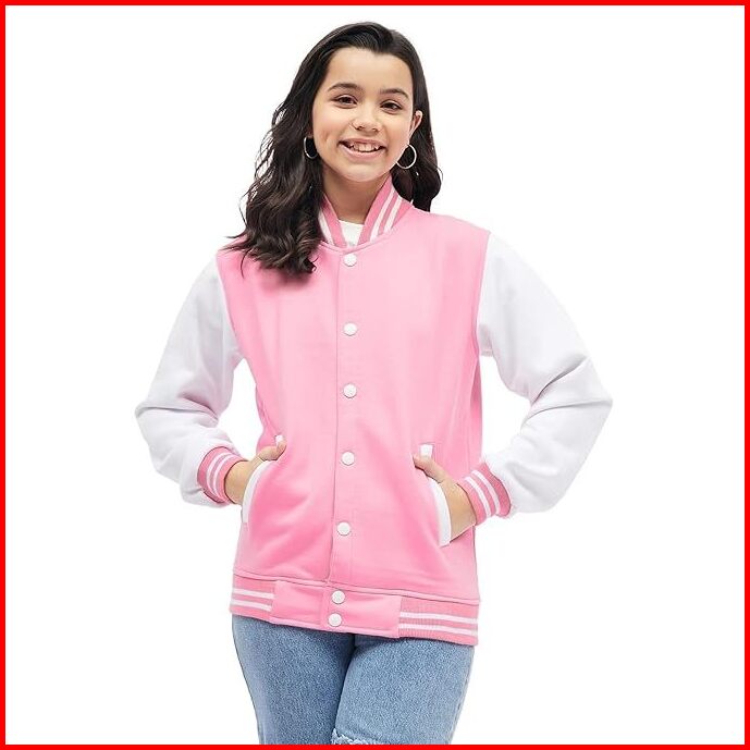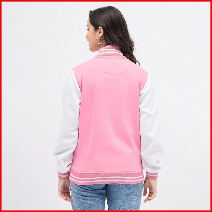 Hanasa Jacket Varsity Kancing Wanita Bomber Baseball Cotton Fleece Premium