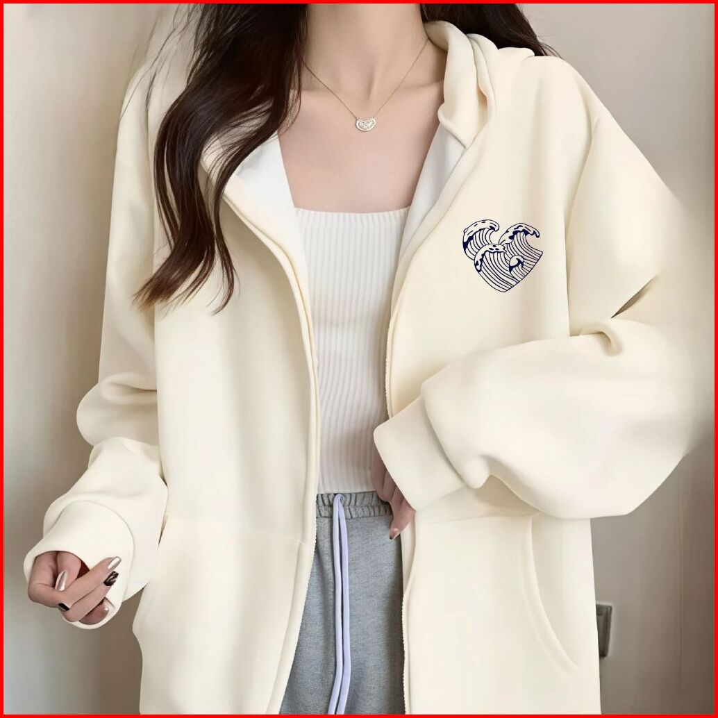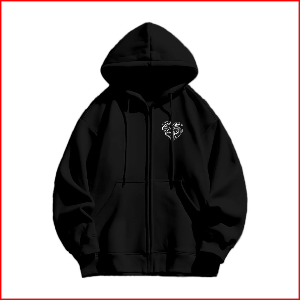 Bexley Jaket Hoodie Zipper Sablon Wave Oversize Size M-xxl Pria Wanita