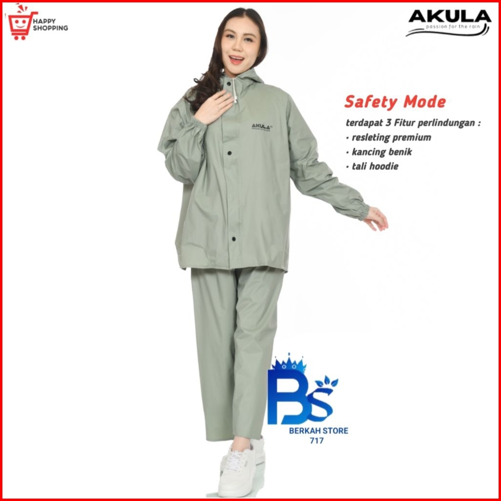 New Seris Terbaru Akula Jas Hujan Raincoat Pria Wanita Dewasa Bahan Tebal Kuat Elastis Anti Rembes New Sage