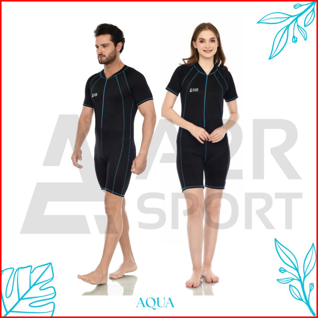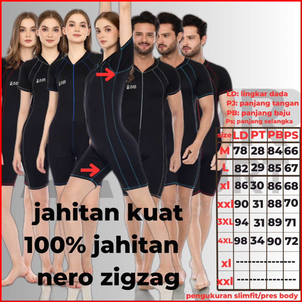Baju Renang Dewasa. Baju Renang Pria Wanita100 Nero Zigzag Diving Lengan Pendekunysex Pria Wanita