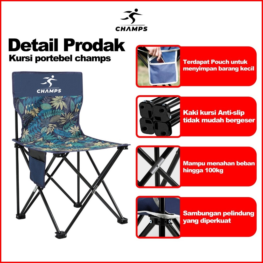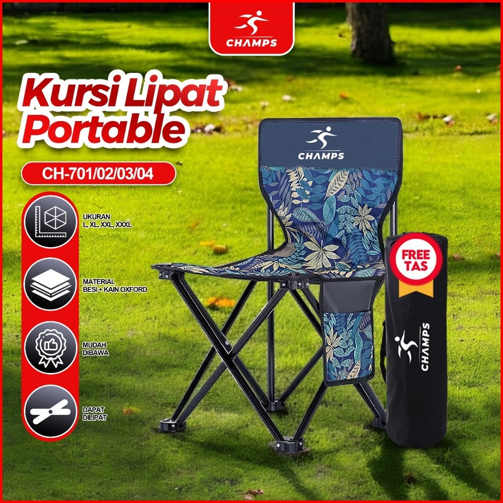 Champs Kursi Lipat Outdoor Murah Camping Mancing Portable Ringan Tahan Lama Nyaman Dipakai Free Tas