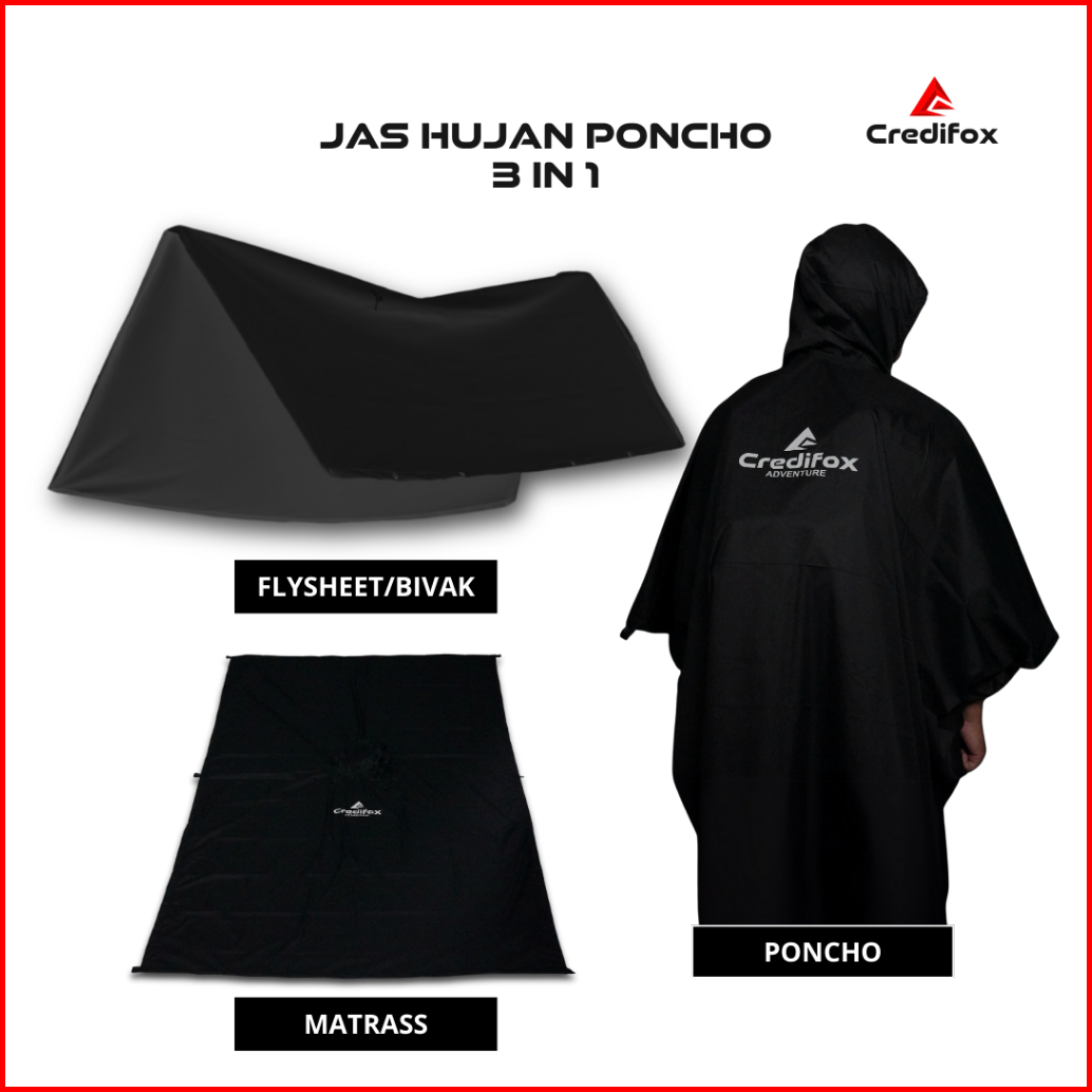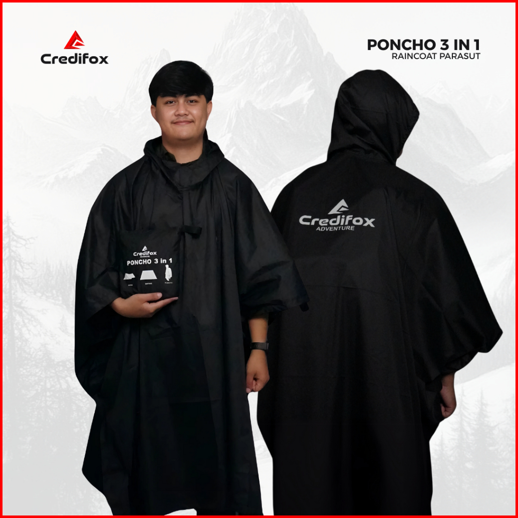 Credifox Jas Hujan Poncho 3in 1 Multifungsi Bahan Parasut Coating Waterproof - Jas Hujan Kelelawar - Jas Hujan Ponco Teb
