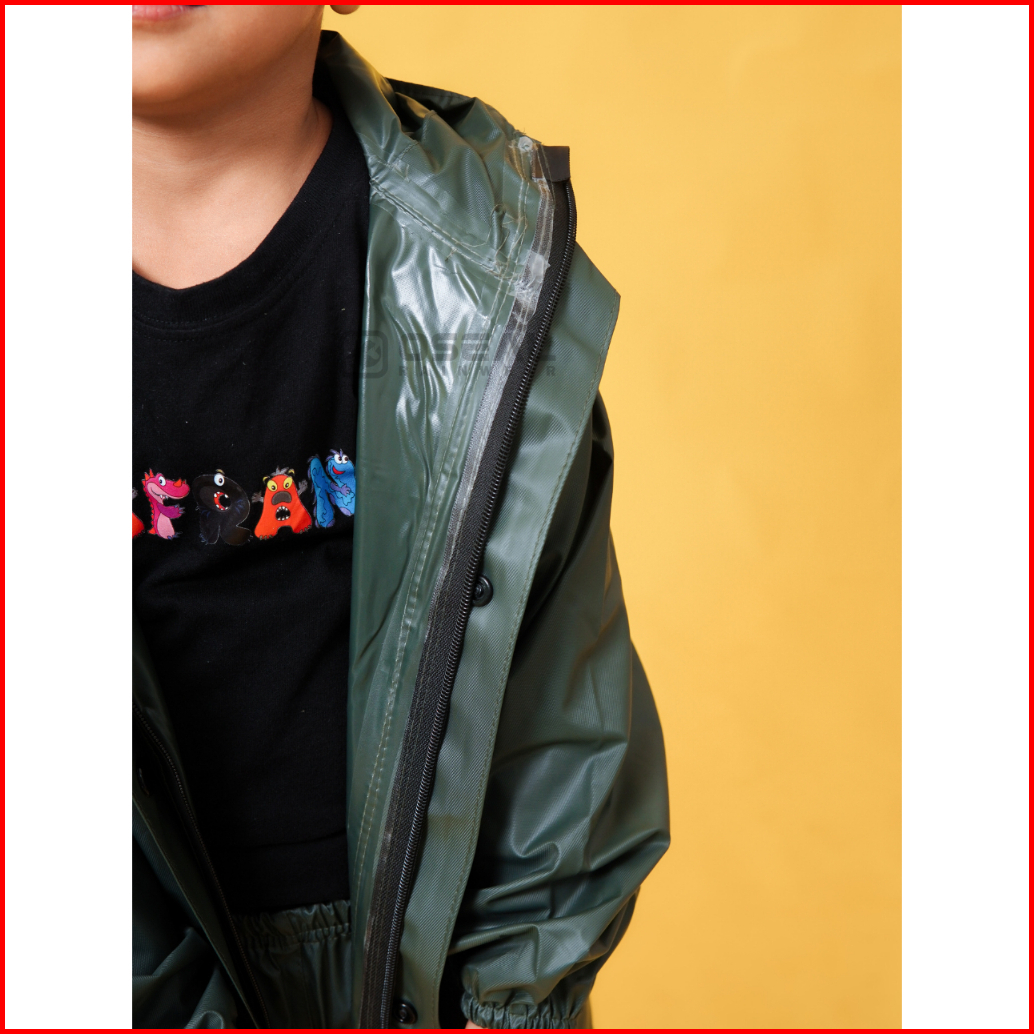 Oseal Jas Hujan Anak Laki Laki Perempuan Full Seal Aurakid Hijau