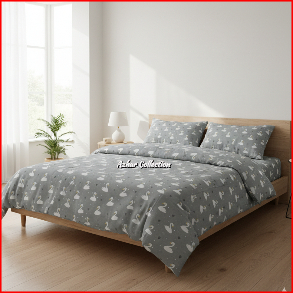 Bedcover Set Sprei Motif Swan Bahan Katun Halus Uk. 200x200 180x200 160x200 140x200 120x200 90x200 Bedcover Set