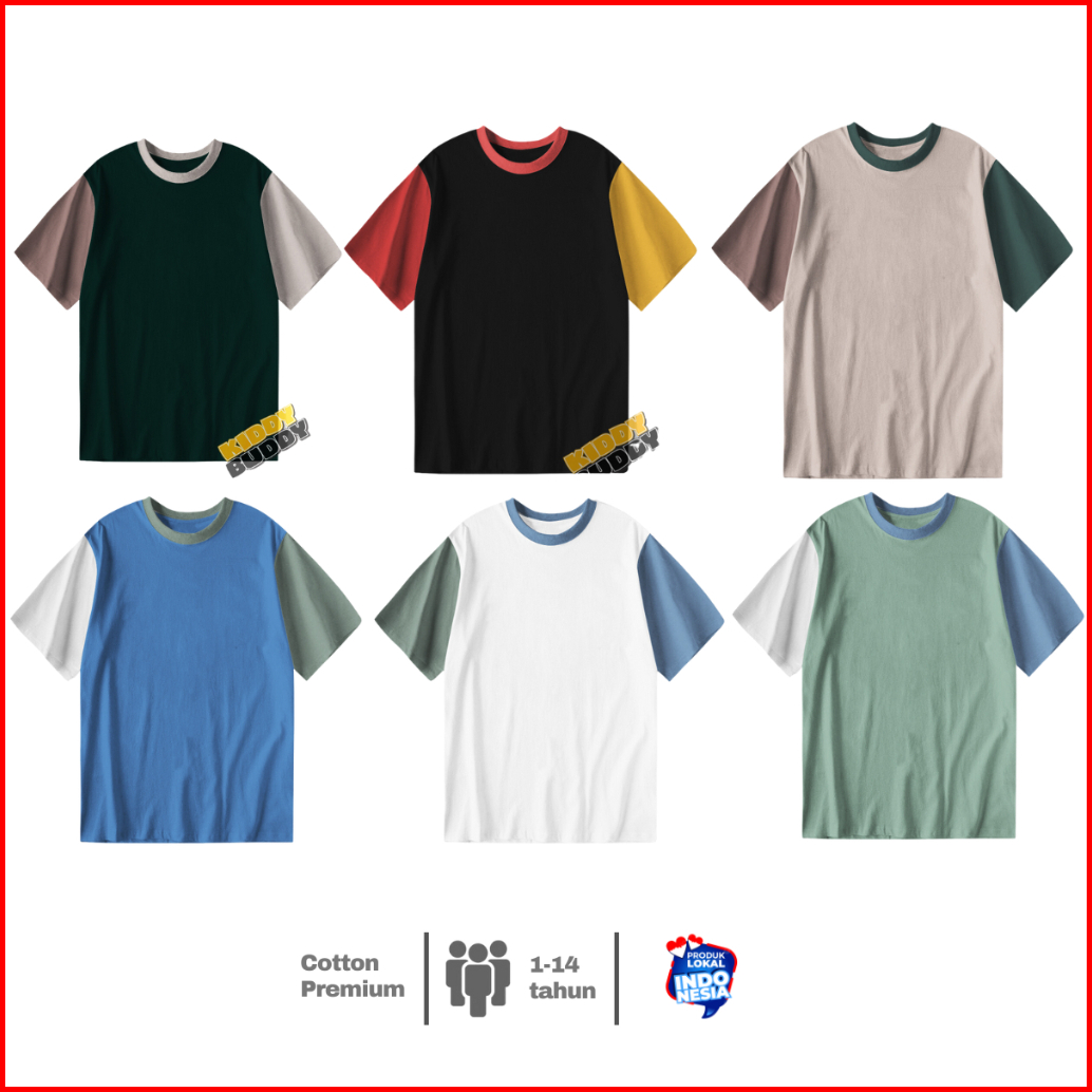 Kaos Polos Kombinasi Baju Anak Laki Laki Perempuan Umur 1-14 Tahun Tricolor Kekinian Katun 24s