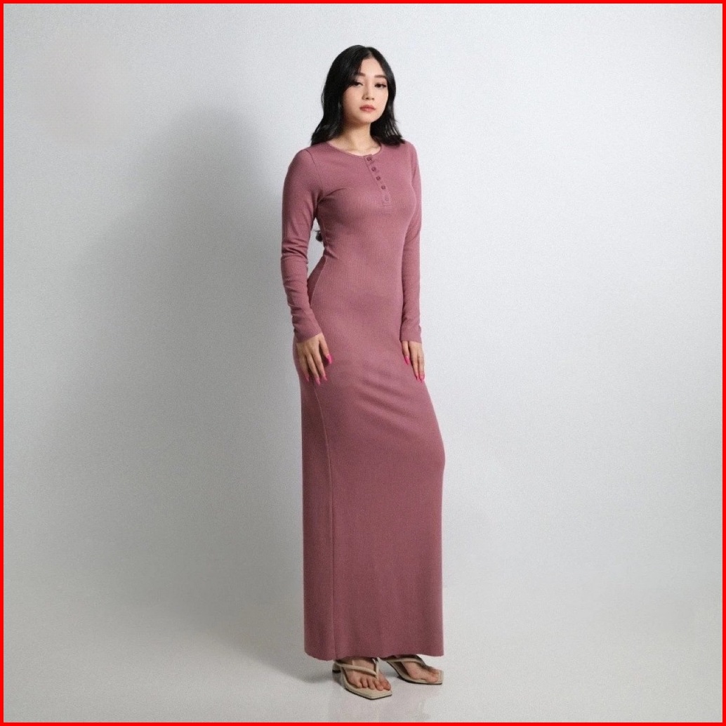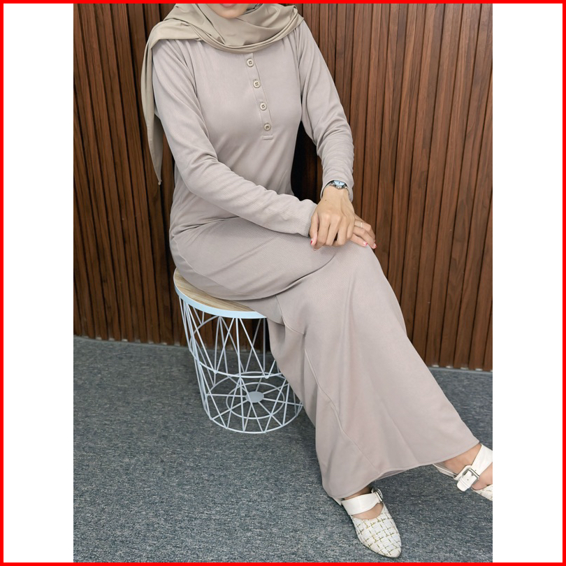 Dress Arisha Korean Style Arisha Casual Long Dress Wanita Knit Kancing Korean Style