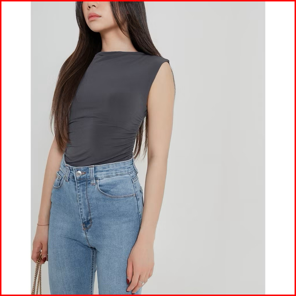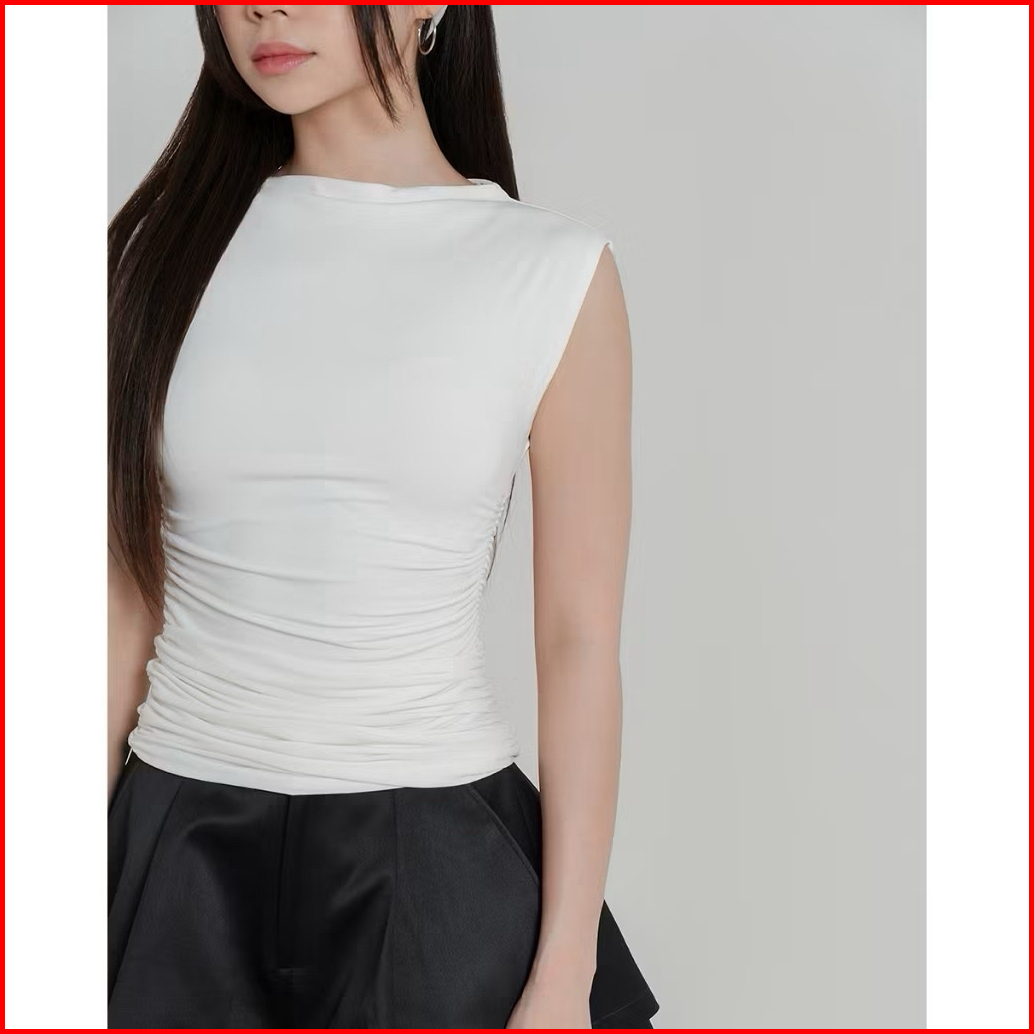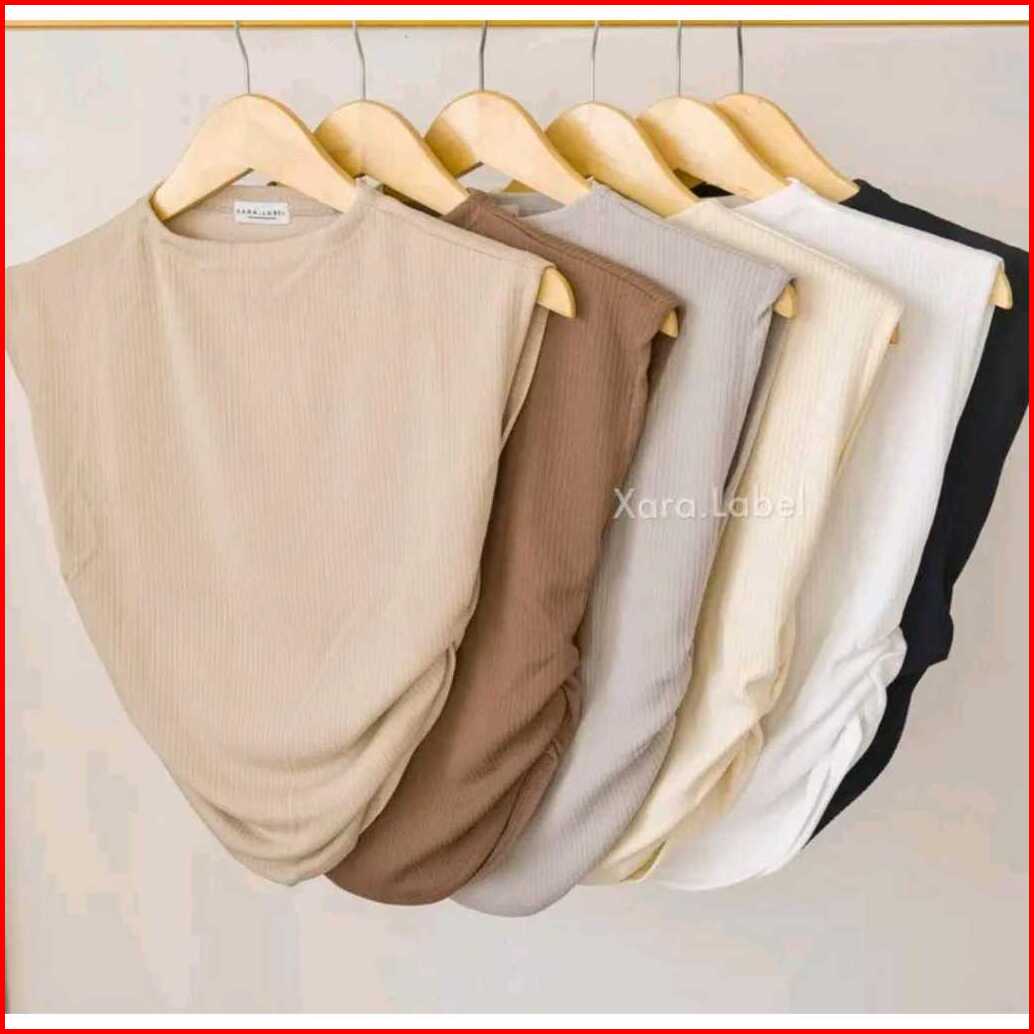 Atasan Wanita Crop Top Mina Rucced Knit Top - Basic Tank Top Rajut Iner Baju Pendek Terlaris