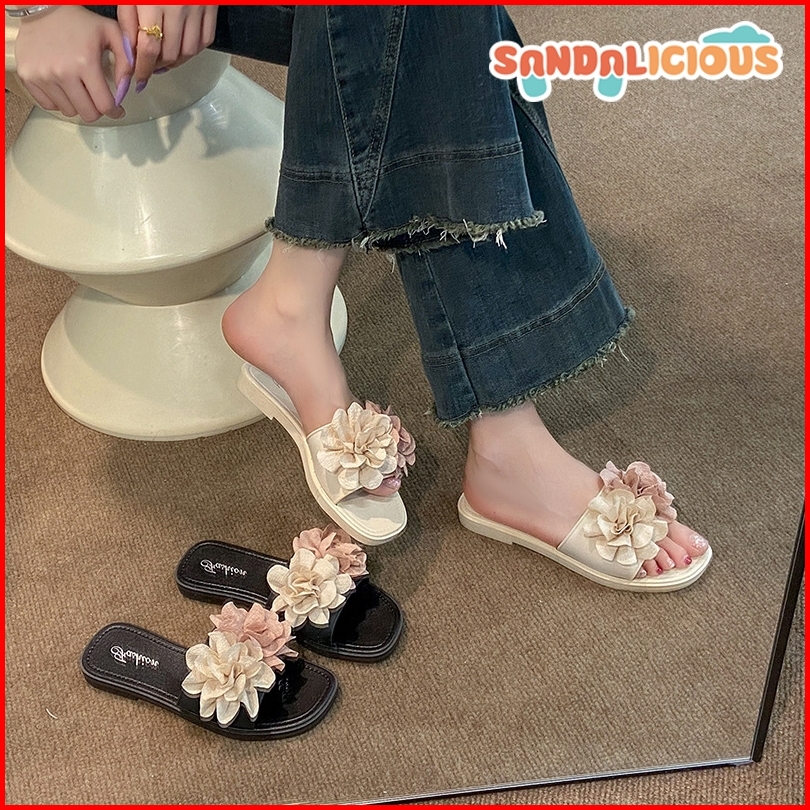 Sandal Bunga Dual Style Korean Style Import Premium - Sandal Wanita Hak 1 5cm Kekinian Murah