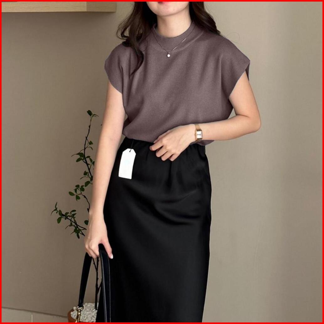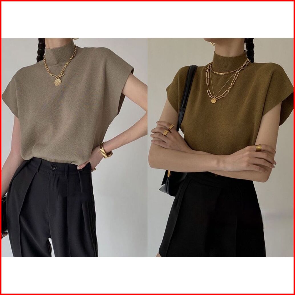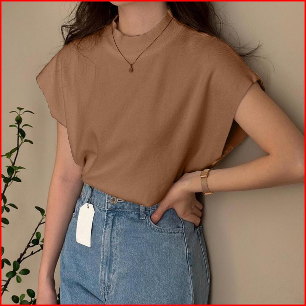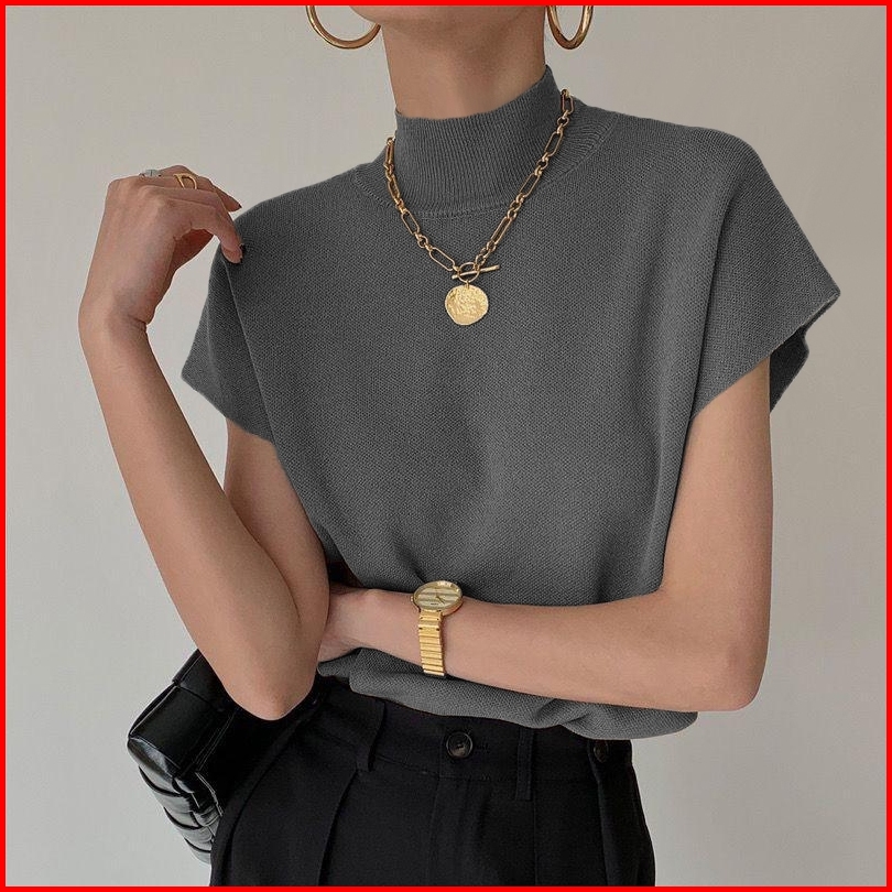 Yoori Top Knit Turtleneck Lengan Pendek Korean Style Knit Rib Korea Look