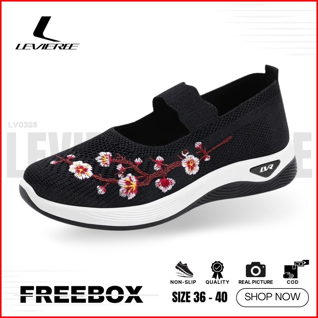 Lvr Amber Free Box Lv0328 Sepatu Slip On Wanita Fashion Motif Bunga