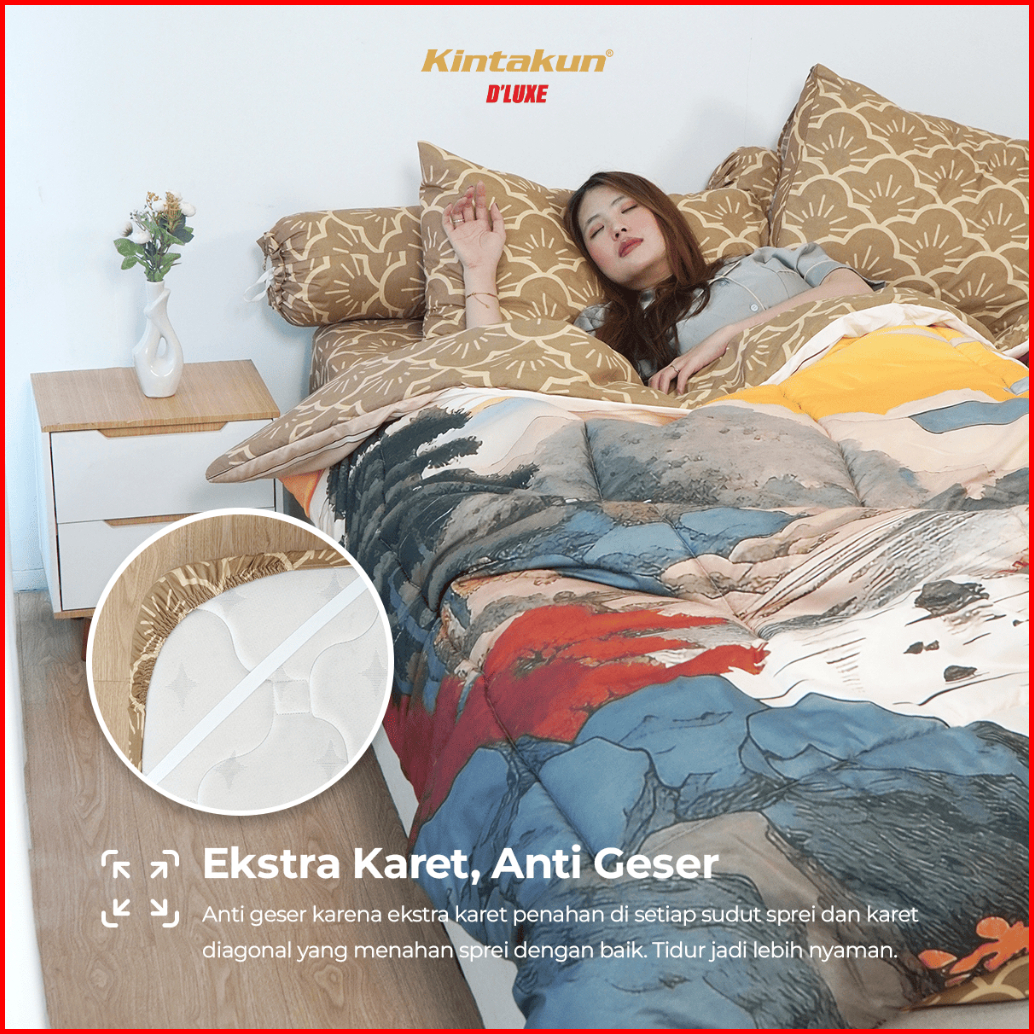 Kintakun Sprei Fitted 180x200 Dluxe Aesthetic Microtex Digital Printing Anti Geser 25 Cm Varian