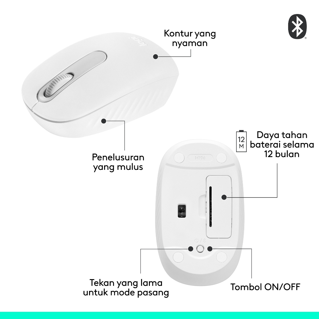 Logitech M196, Mouse Wireless Bluetooth, Mouse Ringkas dan Portabel untuk Laptop, Tablet, dan Lainnya, Baterai 12 Bulan, Penelusuran Mulus