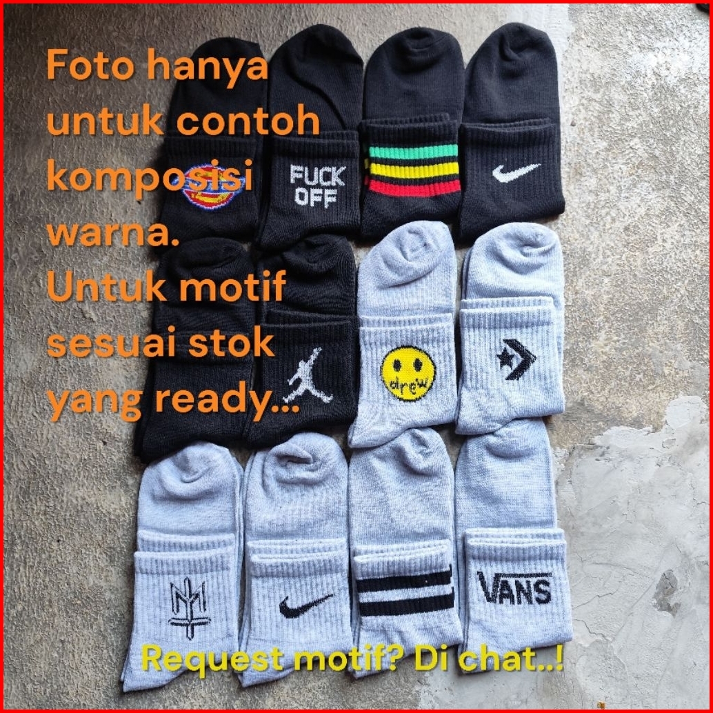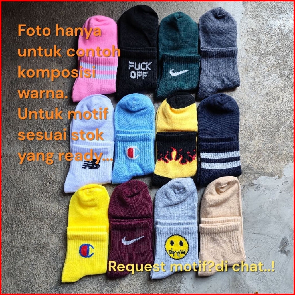 1 Lusin 12 Pasang Kaos Kaki Sport Motif 3 4 Sport Premium -juliansock