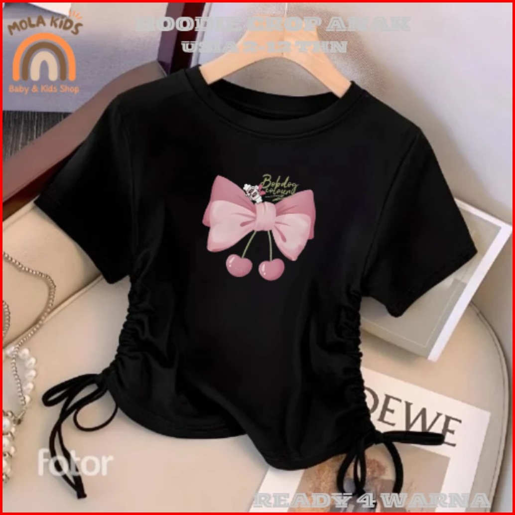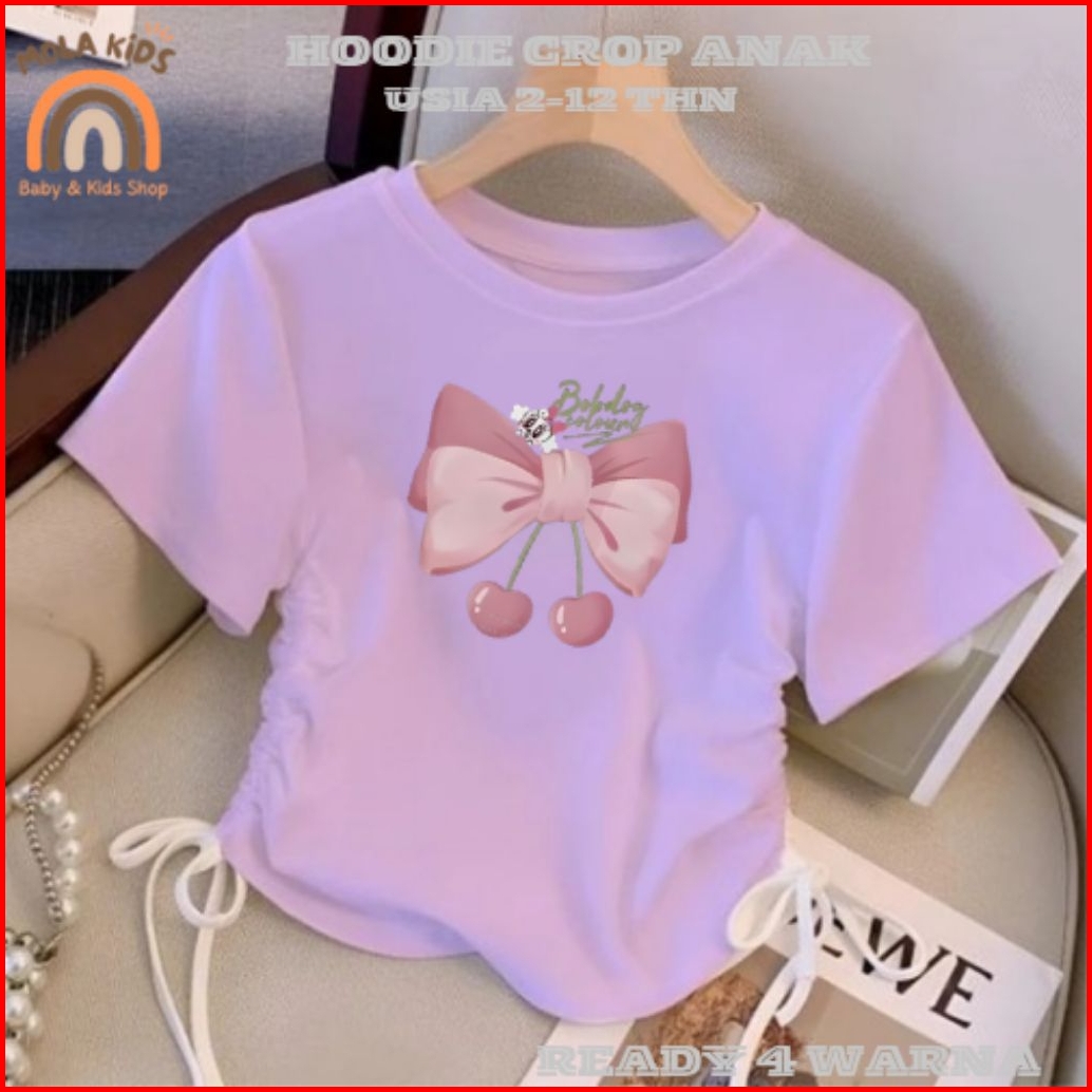 Molakids T-shirt Serut Croptop Pita Anak Perempuan Usia 1-11 Tahun Kekinian Limieted Edition 4 Warna Lilac Putih Hitam T