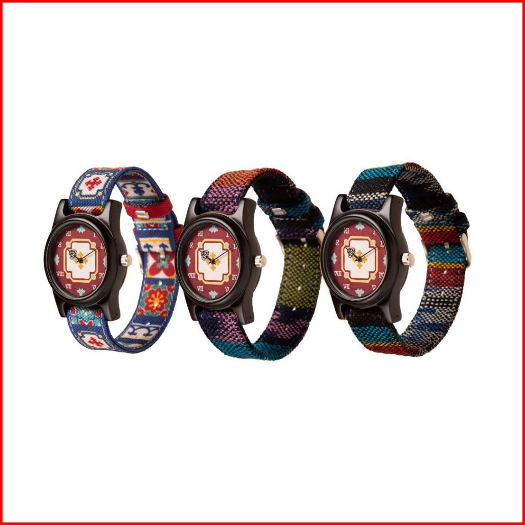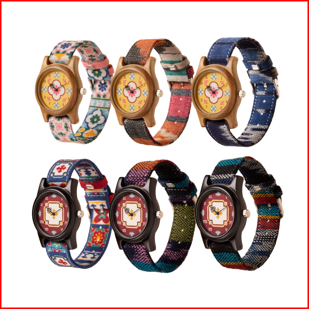 Woodka Corak Collection Kombinasi Tenun Canvas Strap Jam Tangan Kayu Unik
