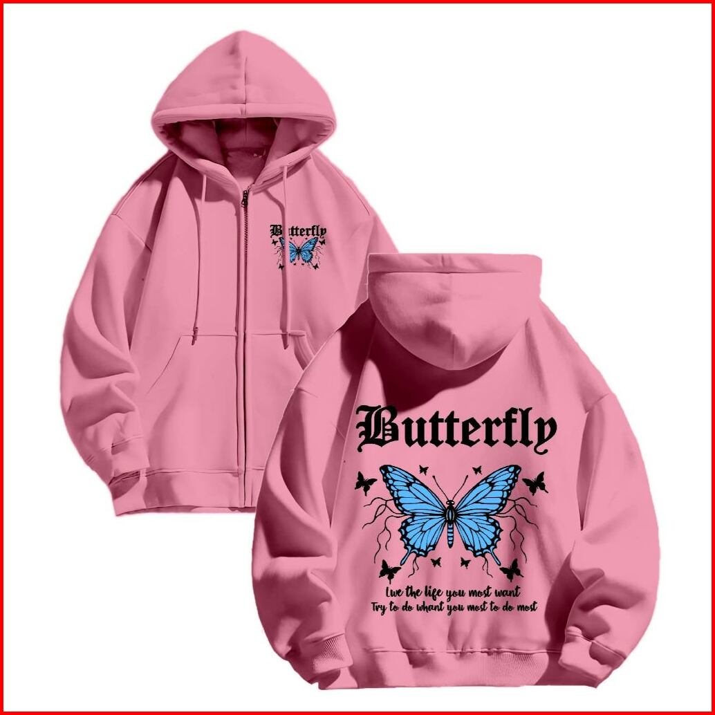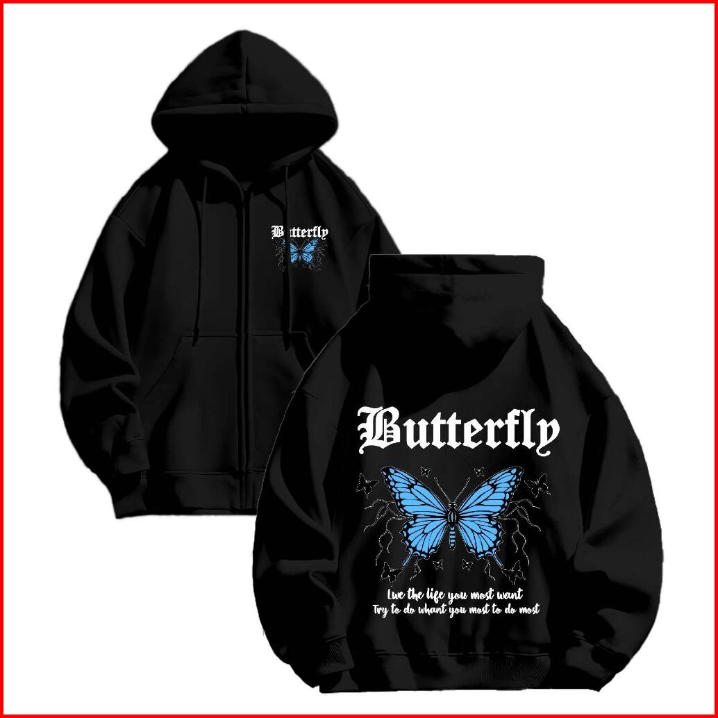Hoodie Jaket Zipper Jyb Oversize Life Butterfly Size M-xxl Pria Wanita