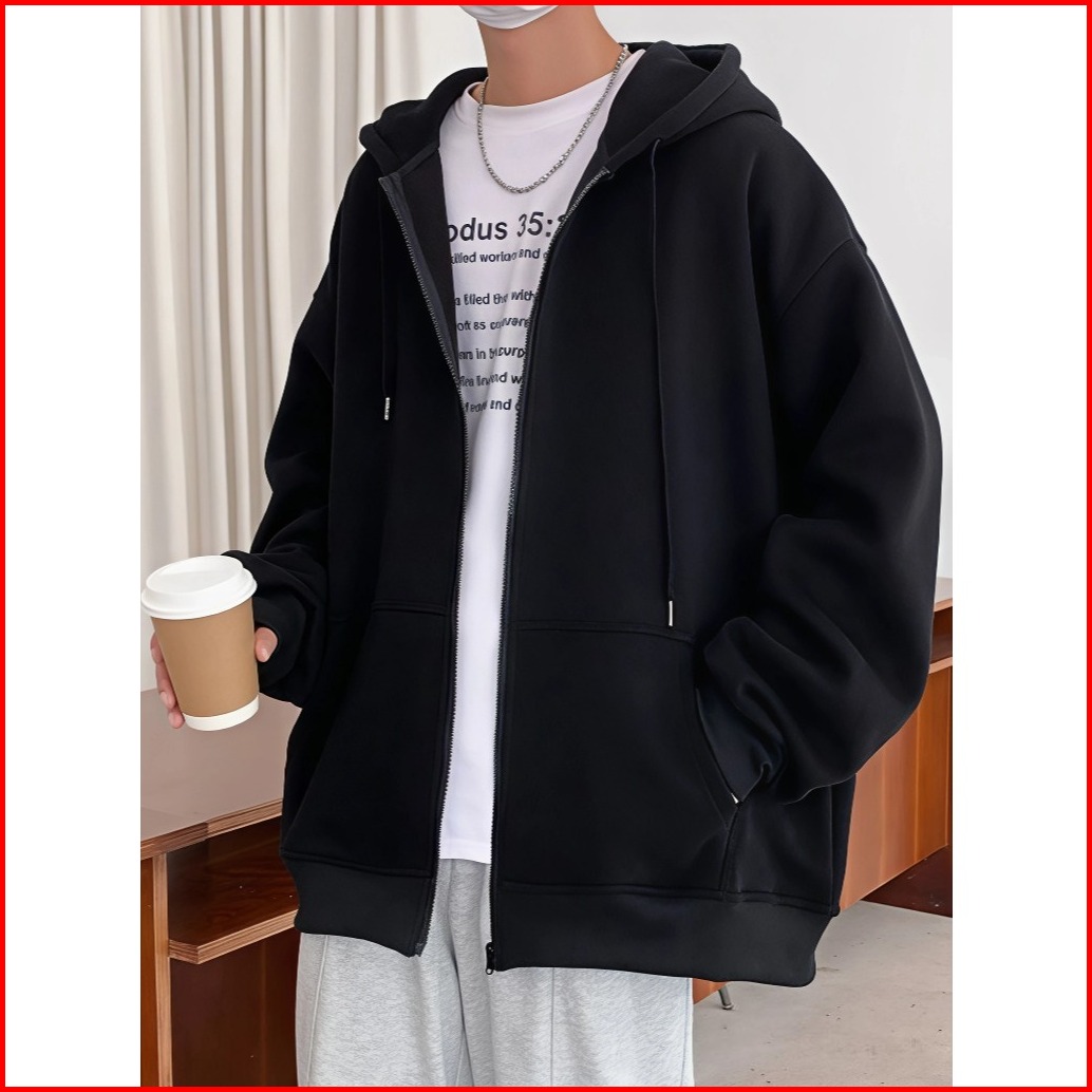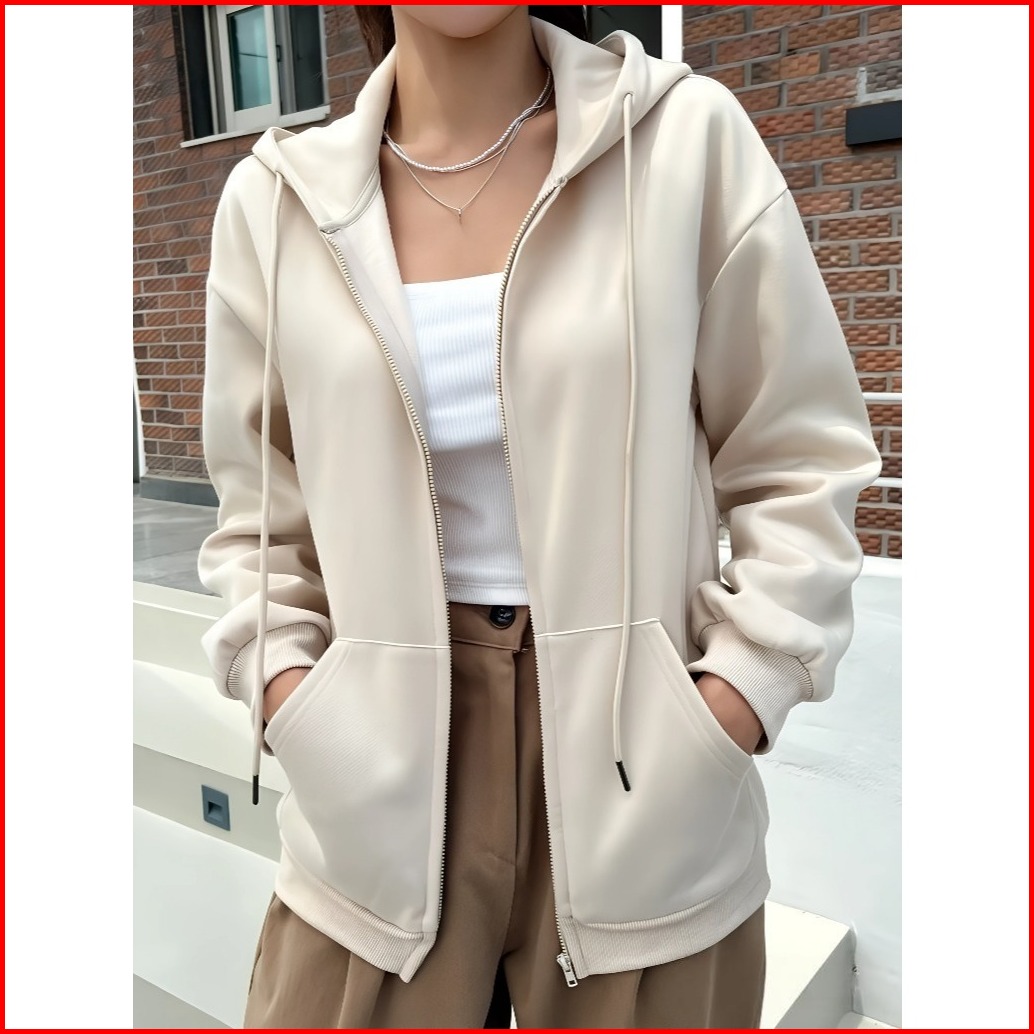 Jaket Hoodie Zipper Basic Polos Oversize Korea Style Hoodie Polos M-xxl Pria Wanita