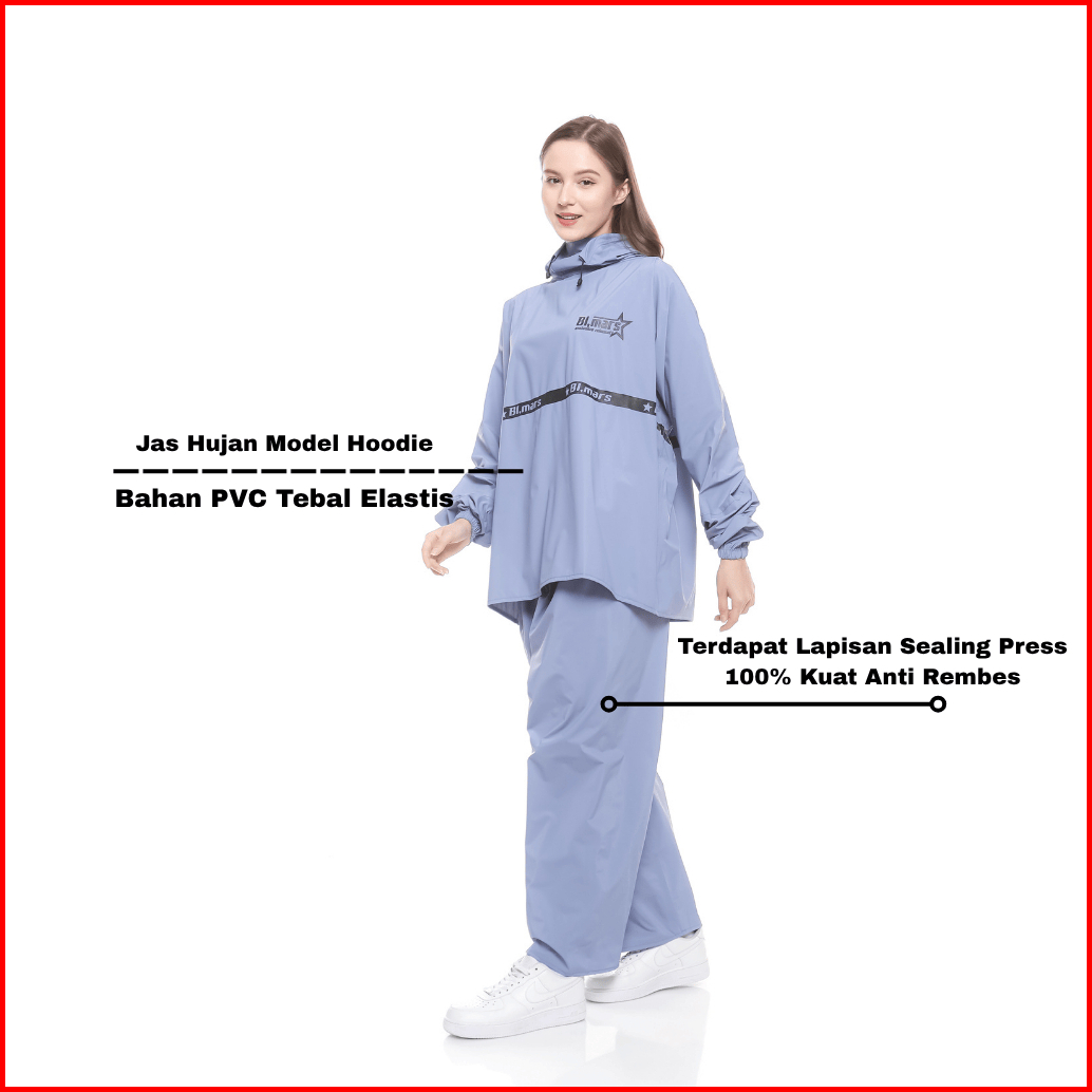 Jas Hujan Hoodie Terbaru Pria Wanita Bahan Pvc 0 25 Tebal Elastis Anti Rembes Original Bi.mars
