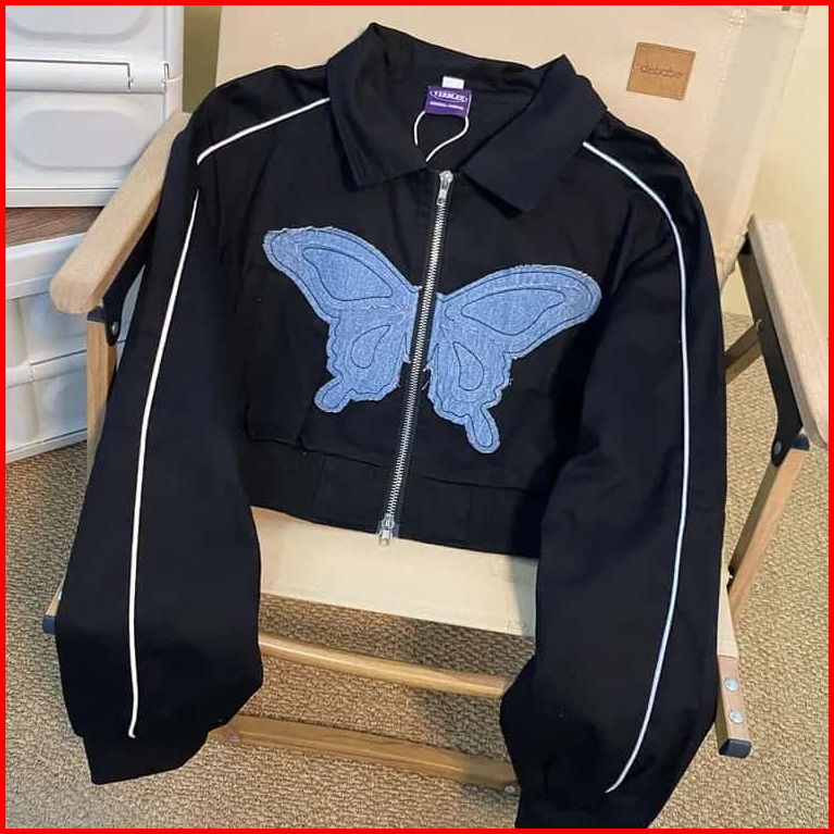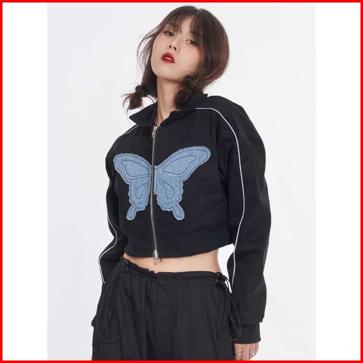 Vallina - Butterfly Two Zip Crop Jacket Outerwear Wanita Korean Style Premium - Butterplay Jaket