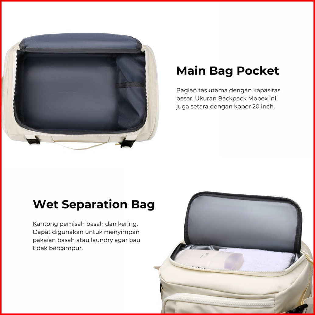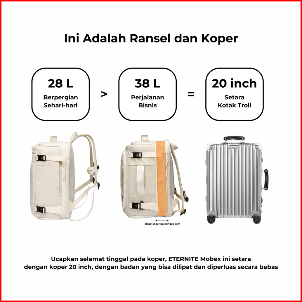 Eternite Mobex 20inch Anti Scratch Water Proof Travel Bag Expandable 2in1 With Shoes Compartment Usb Port - Tas Ransel T
