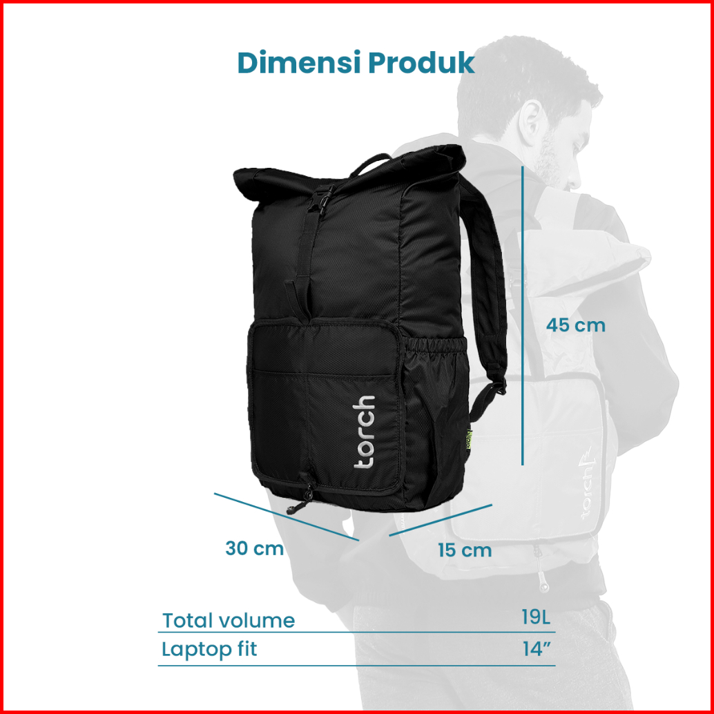 Torch Kumano Tas Ransel Mudik Lipat Punggung Pria Wanita Tahan Air 19 Liter