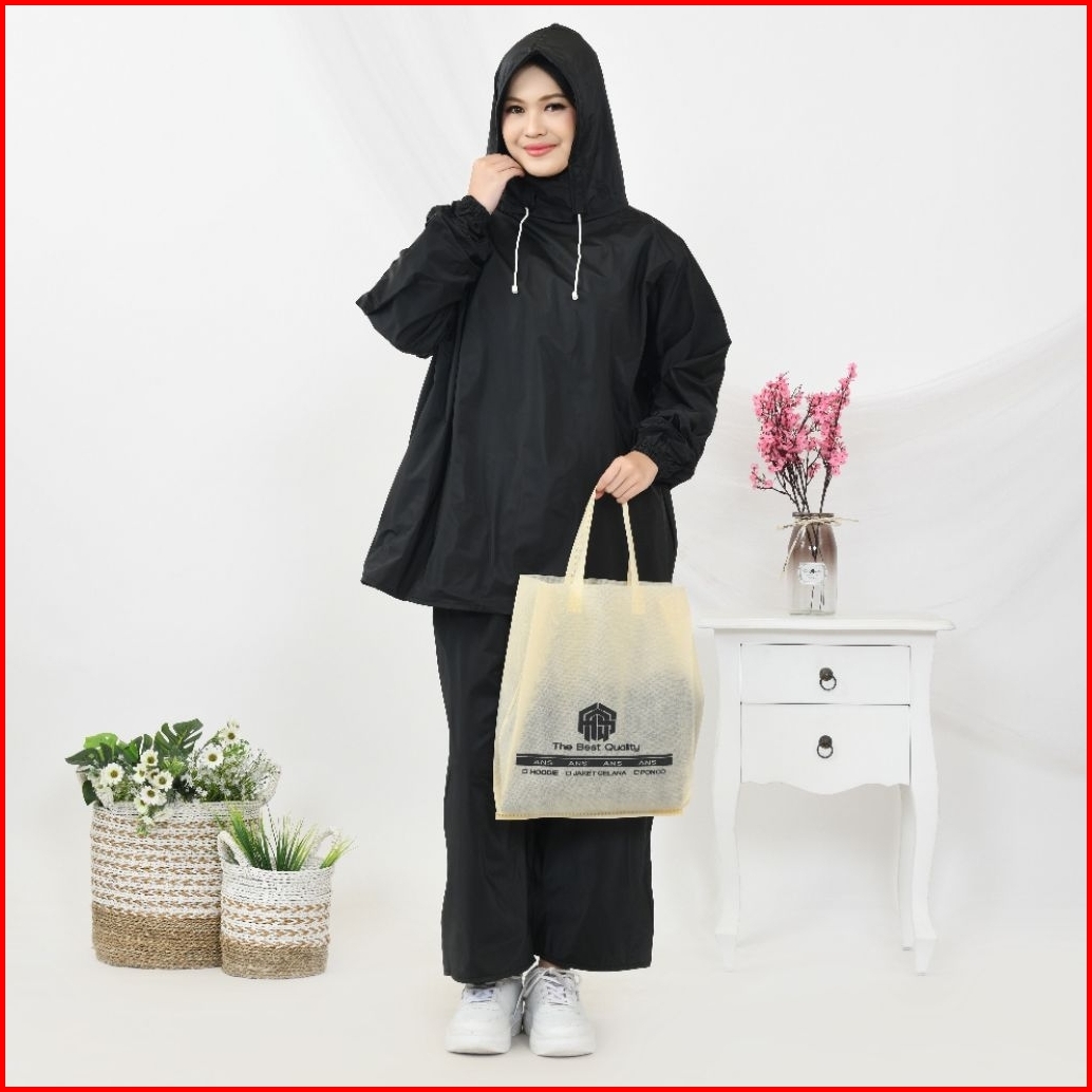 Jas Hujan Terbaru Model Setelan Hoodie Bahan Pvc 0.25 Tebal Elastis Anti Rembes