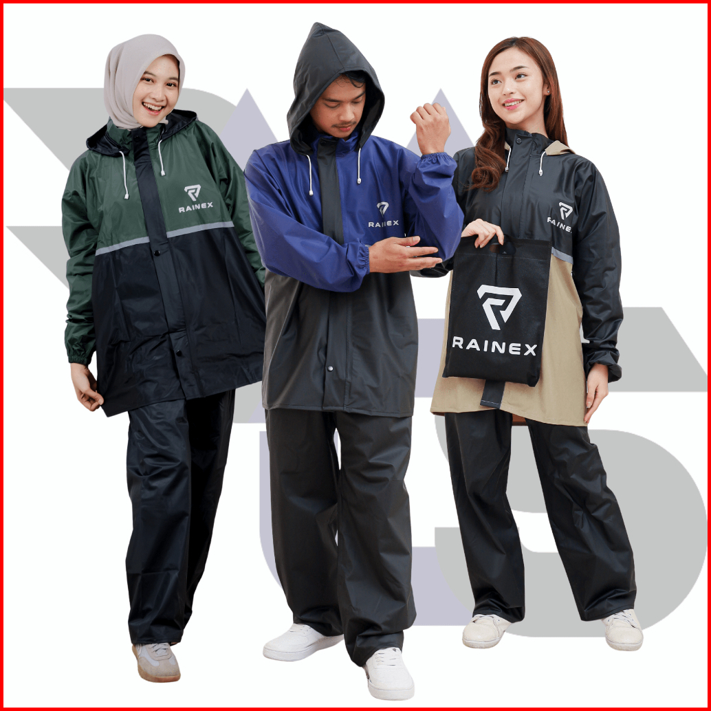 Jas Hujan Mantel Pria Wanita Set Hoodie Bahan Karet Pvc Tebal Fullpress Sealer Anti Rembes Rainex
