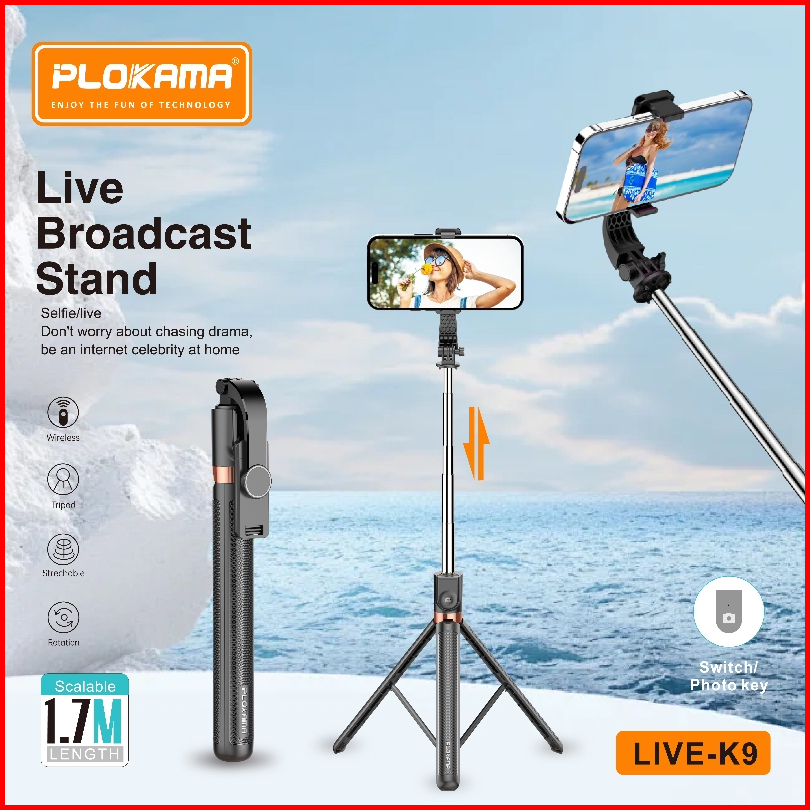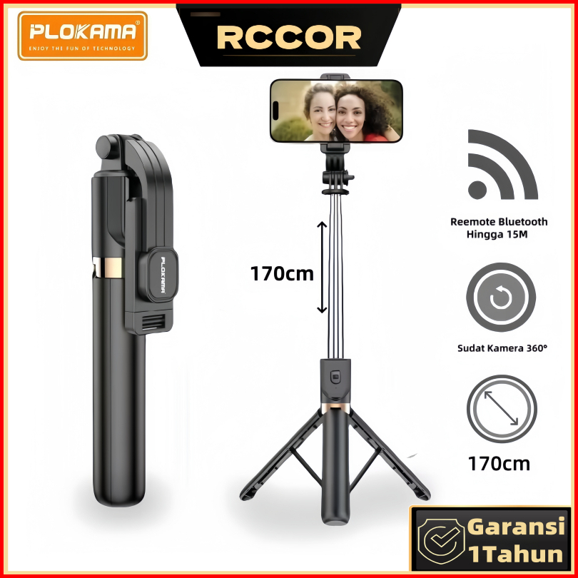 Rccor Tripod Bluetooth Selfie Stick 1.7m 360 Rotasi Praktis Fleksibel