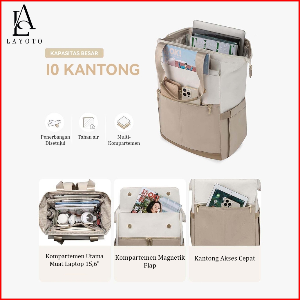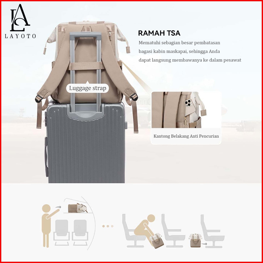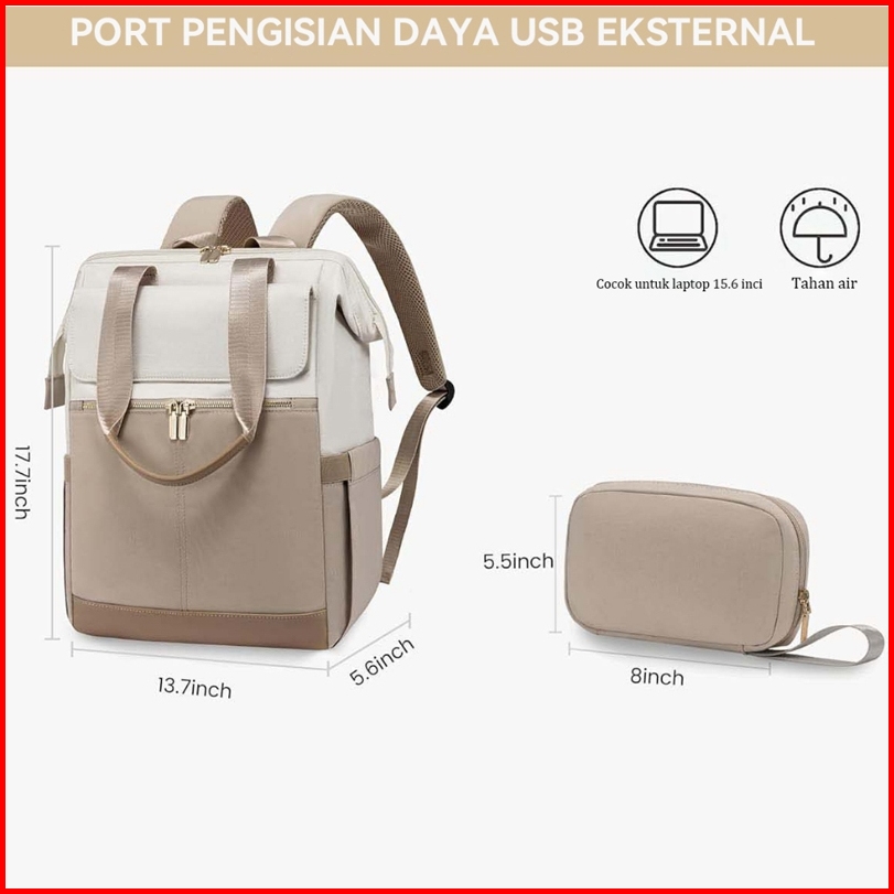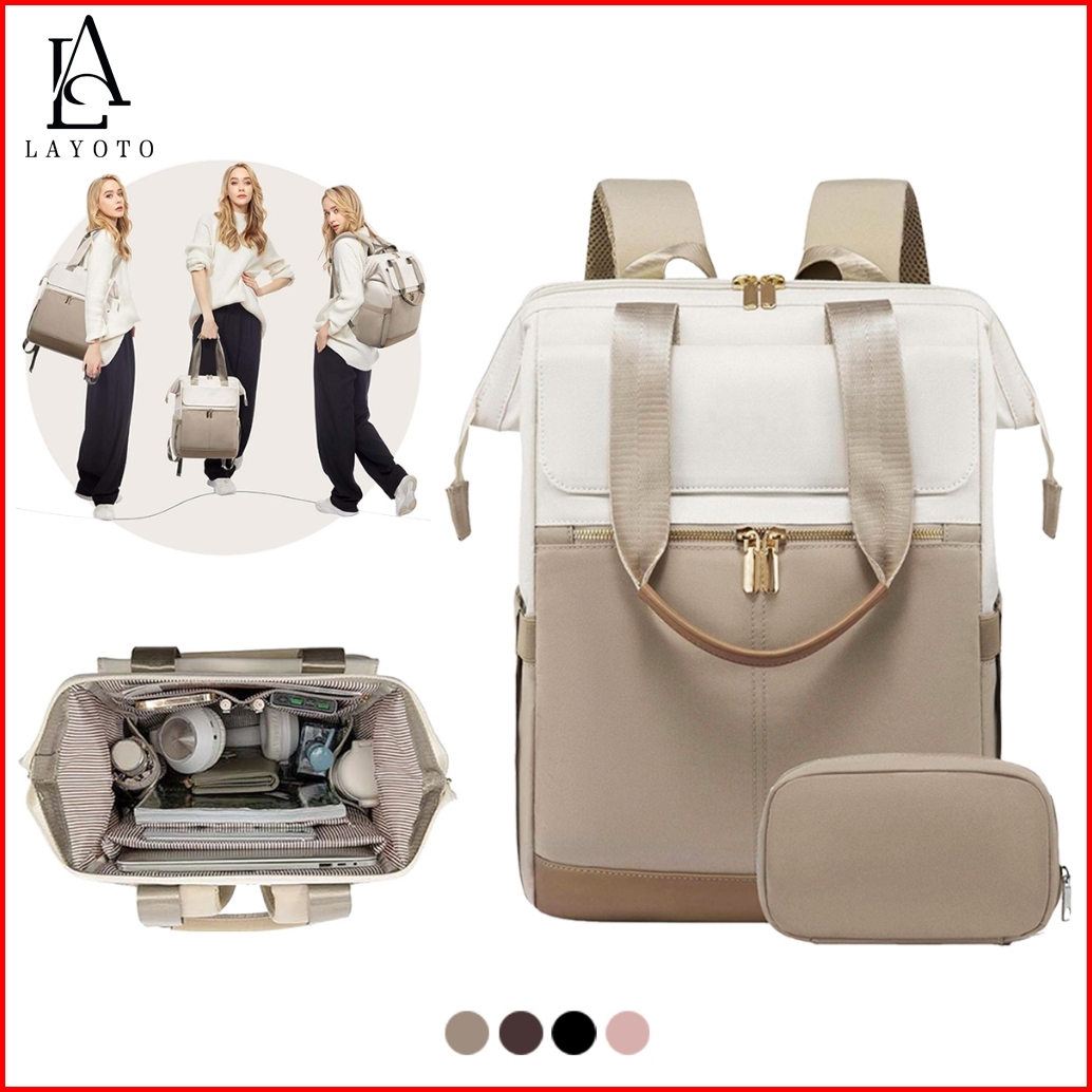 Layoto Set 2in1 Tas Ransel Wanita Tas Ransel Laptop 15 6 Inch Tahan Air Tas Sekolah Wanita Backpack