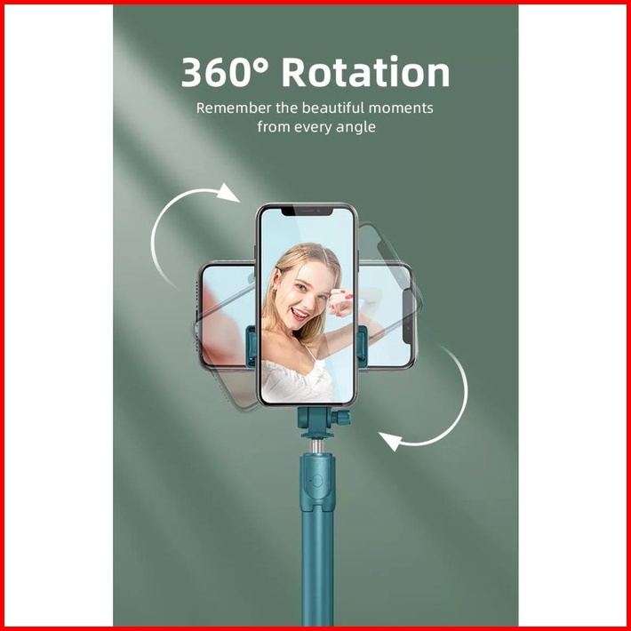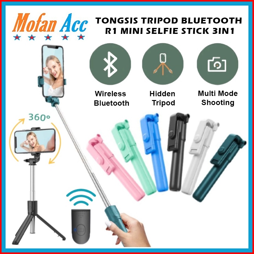 Tongsis Bluetooth 3in1 R1 Remote Shutter Selfie Stick 360 Tripod Mini Vlog Praktis Portable