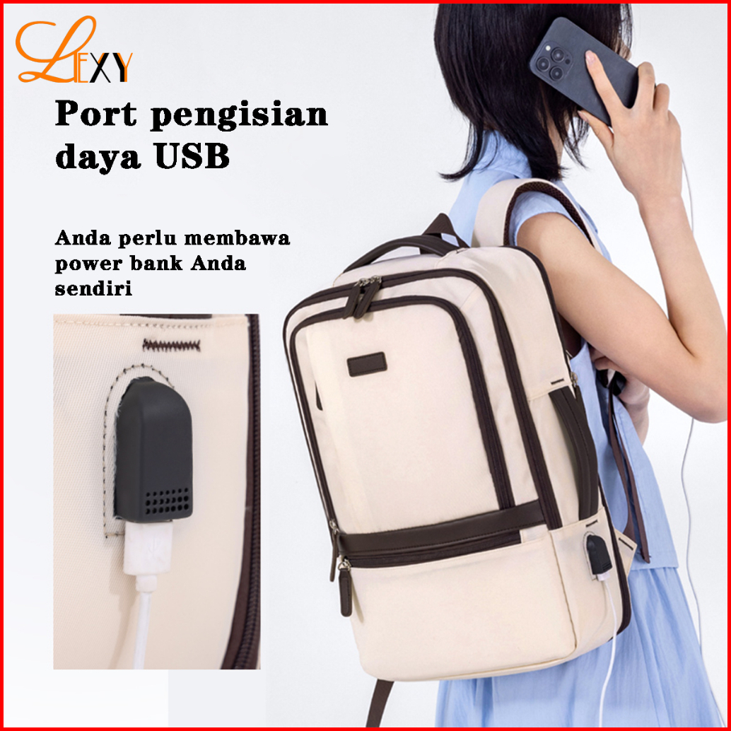 Lexy Expandable Tas Ransel Laptop 16 Inch Waterproof Tas Ransel Wanita Tas Kasual Dengan Port Usb