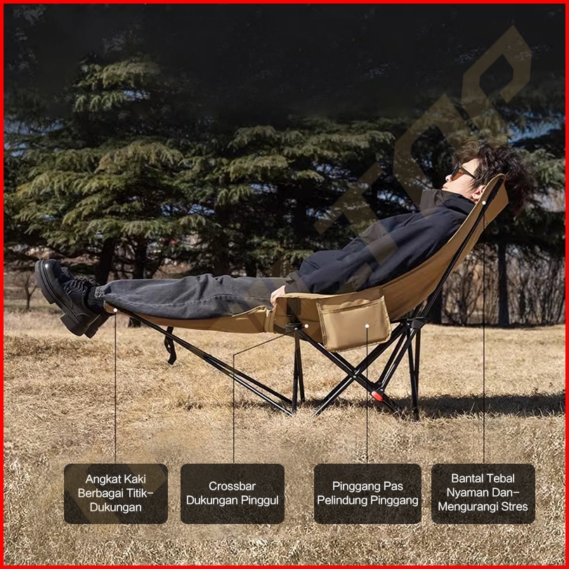 Trailtop Kursi Lipat Outdoor Adjustable Sandaran Tinggi Kapas Busa Tebal Kursi Camping Beban 150kg