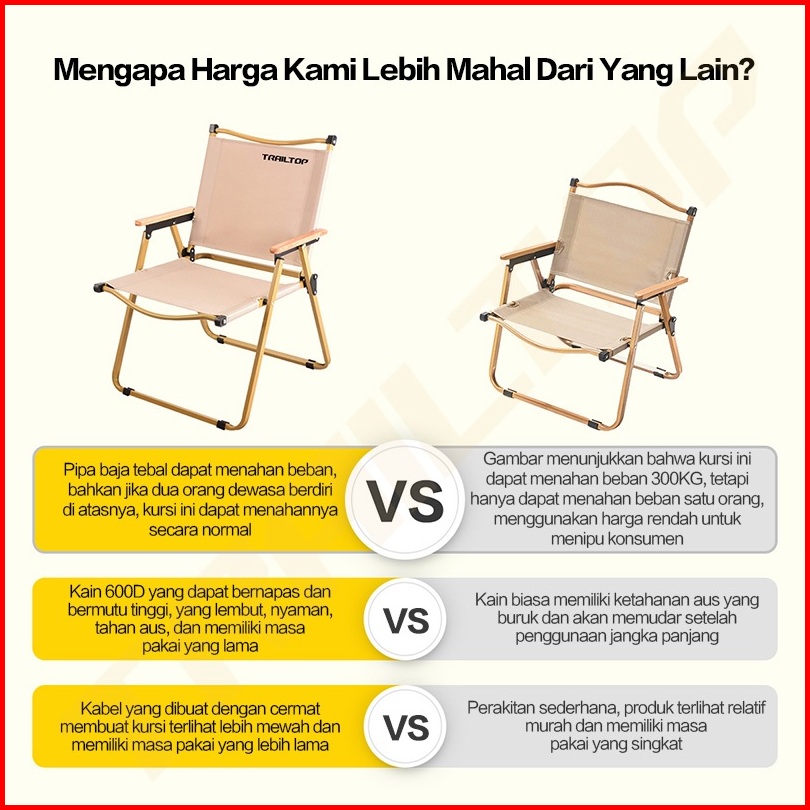Trailtop Kursi Lipat Outdoor Dengan Gagang Kayu Kain Oxford Kursi Camping Kermit Kursi Pantai Lipat