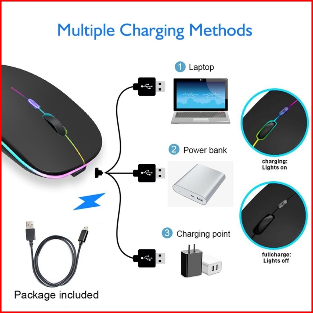 Q14 - Mouse Bluetooth Rechargeable Wireless Mouse Ultra-thin Silent Led Colorful Blacklit Gaming Mouse