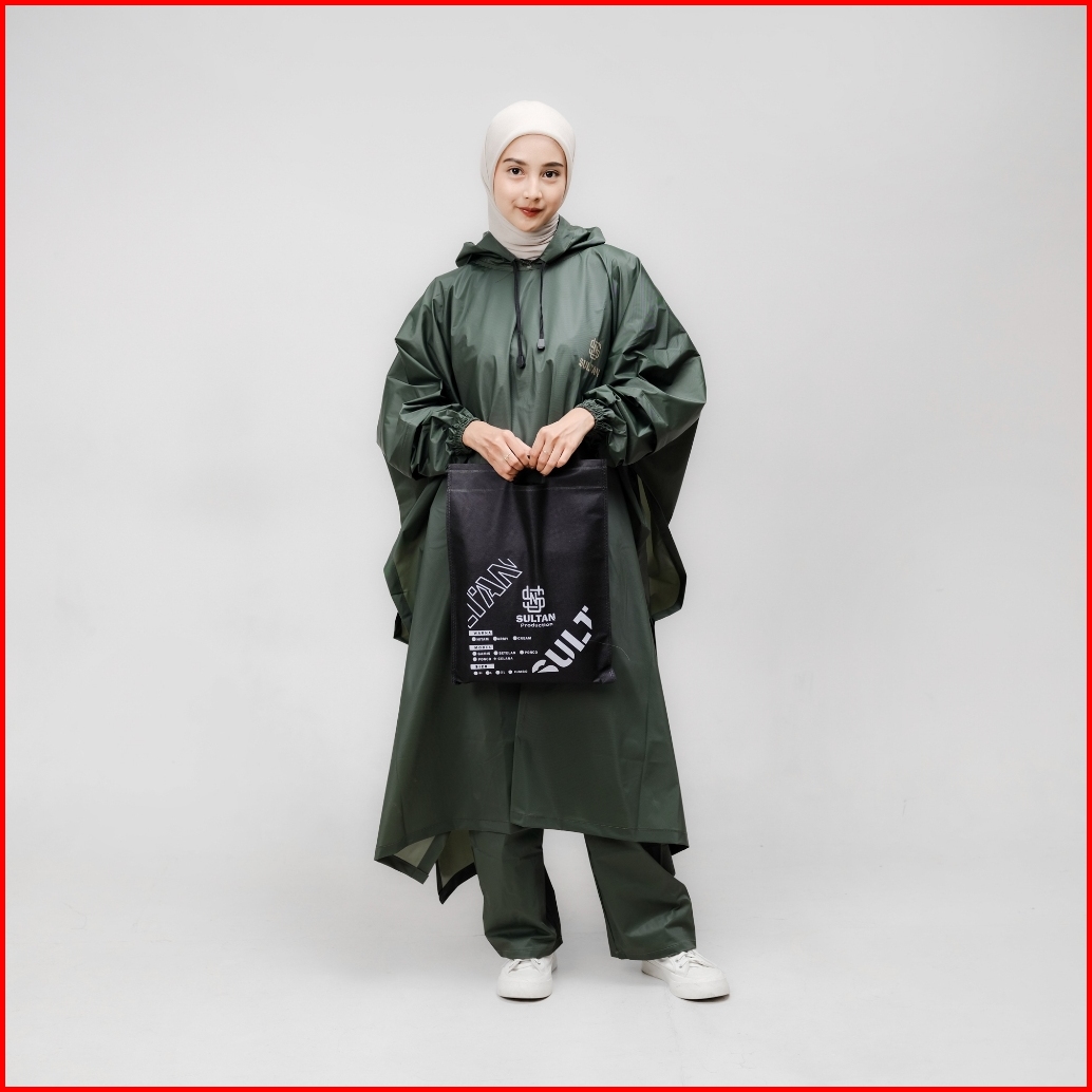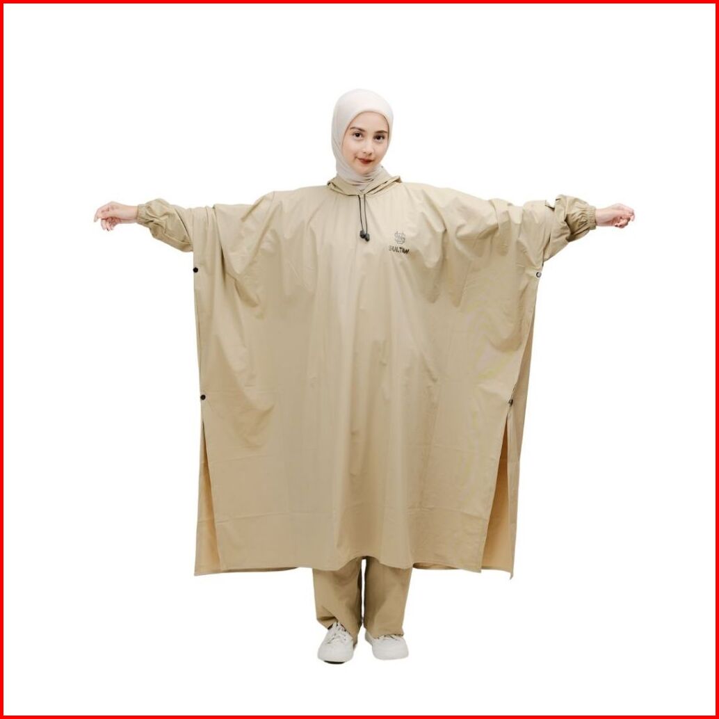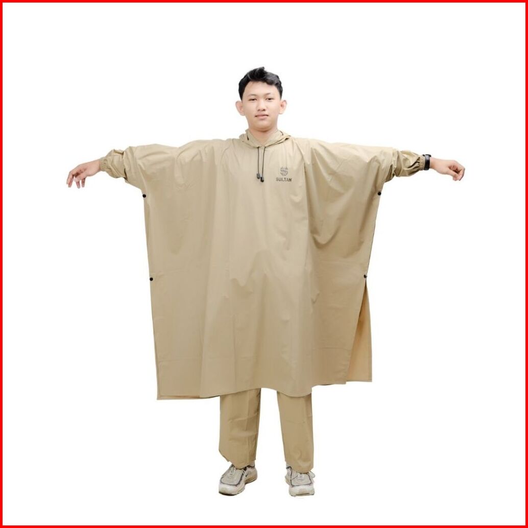Sultan Jas Hujan Setelan Pria Wanita Ponco Celana Dewasa Cream