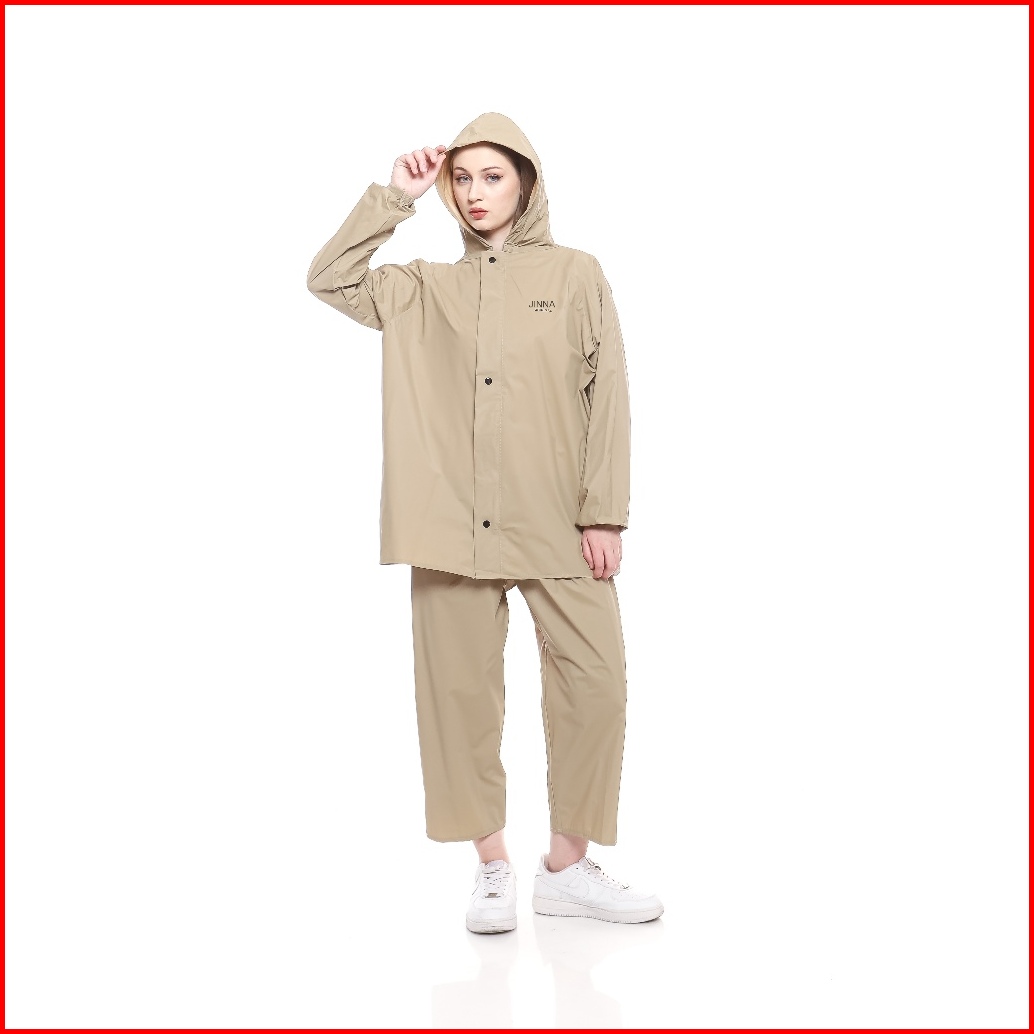 Jinna - Jas Hujan Setelan Pria Wanita Bahan Pvc Tebal Anti Rembes Air Black