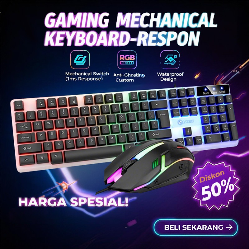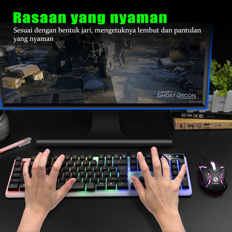 Keyboard Mouse 1 Set Gaming RGB Wired Grip Anti Keringat