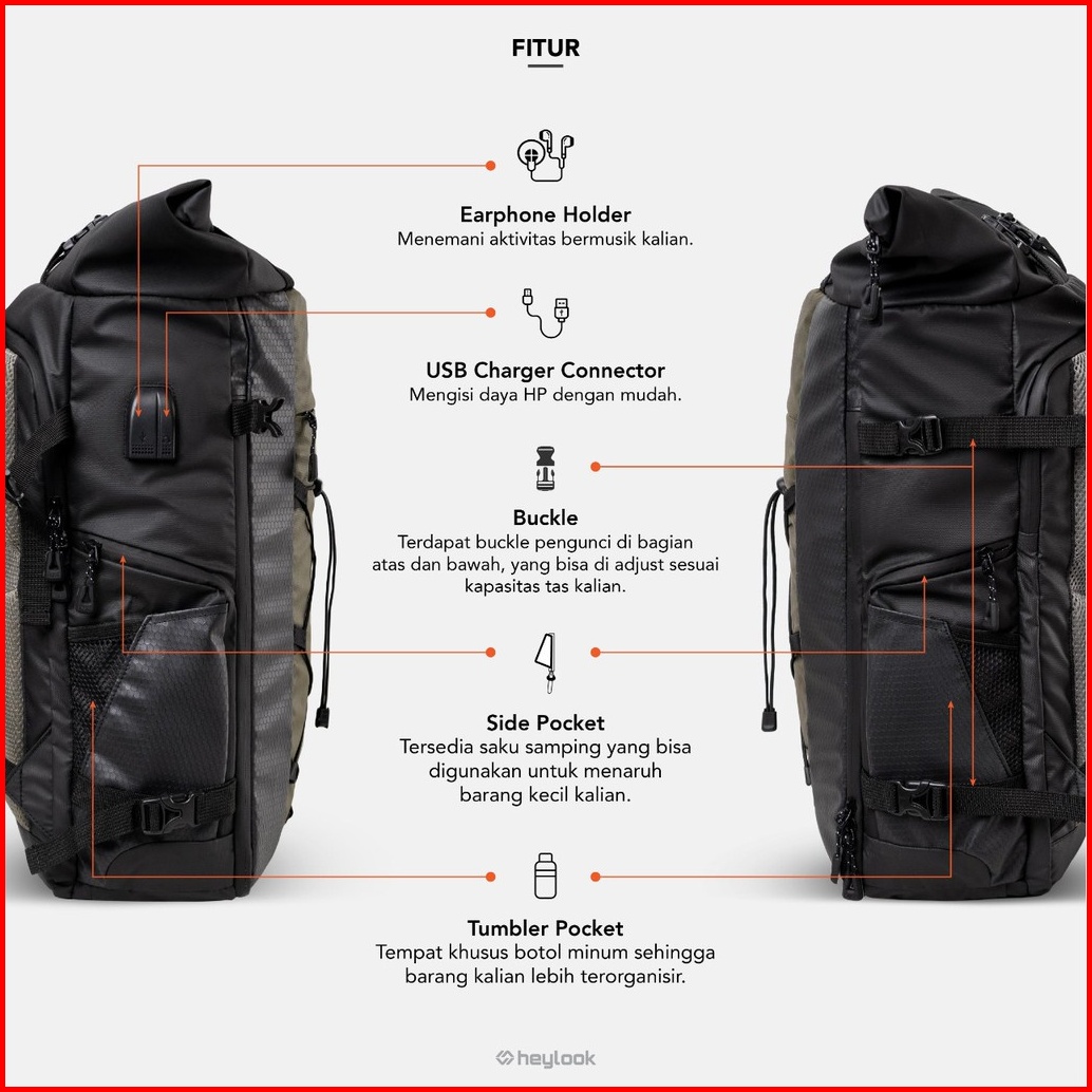 Heylook - Backpack Rockford Tas Ransel Laptop Waterproof Usb Connector Tas Travelling Anti Air Tas Backpacker Tas Travel
