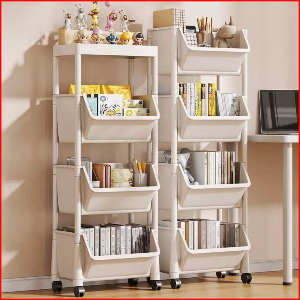 Factory Outlet Rak Susun Serbaguna 4 Tingkat Bahan Plastik Dengan Roda Rak Kamar Mandi Bahan Plastik Portable Rak Dapur