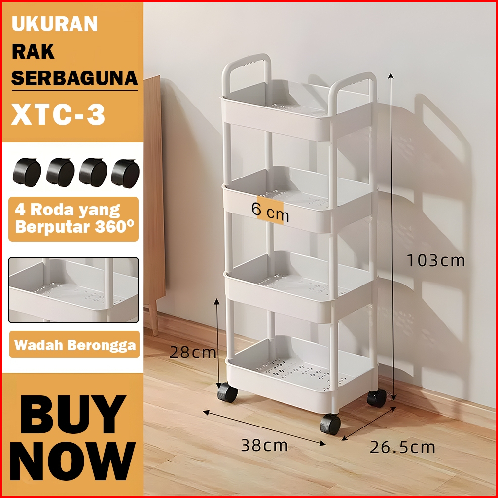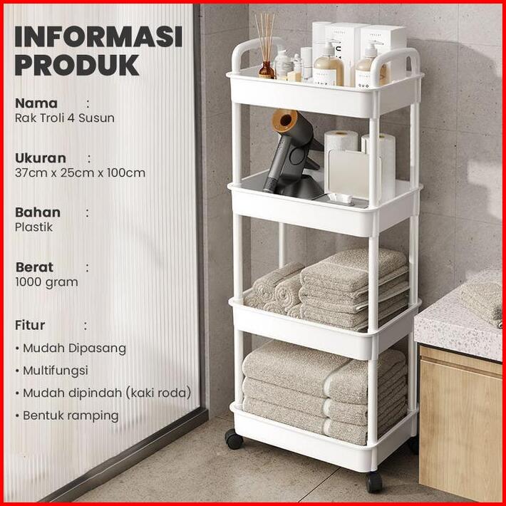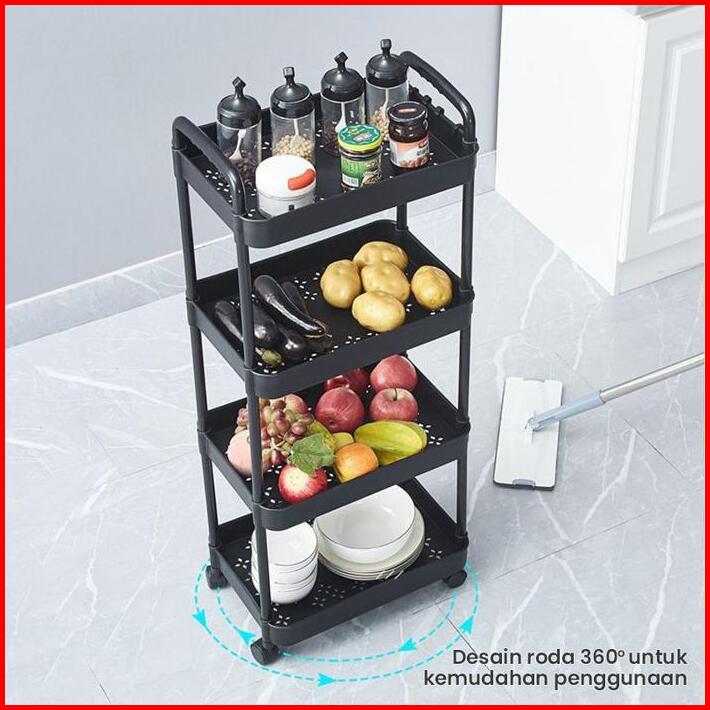 Rak Troli Plastik 4 Tingkat Rak Toilet Rak Kamar Mandi Rak Dapur Serbaguna Dengan Roda Rak Susun