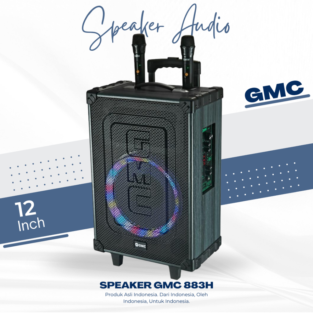 Speaker Trolley GMC Portable 883H 12 Inch Speaker Karaoke Bluetooth Free 2 mic Wireless Bass Super Original