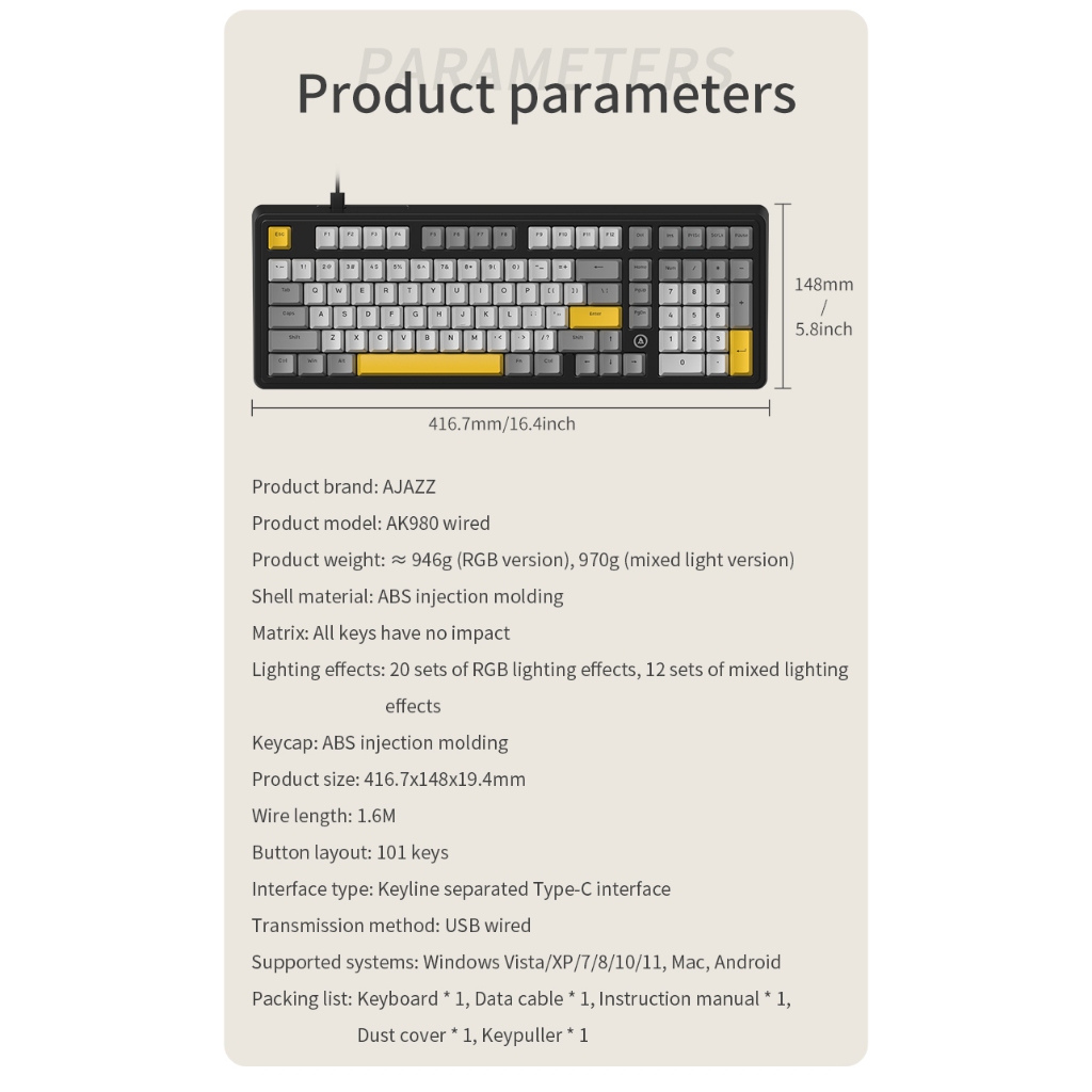 Ajazz AK980 Wireless Mechanical Keyboard Gaming RGB with TFT LCD Screen and Knob