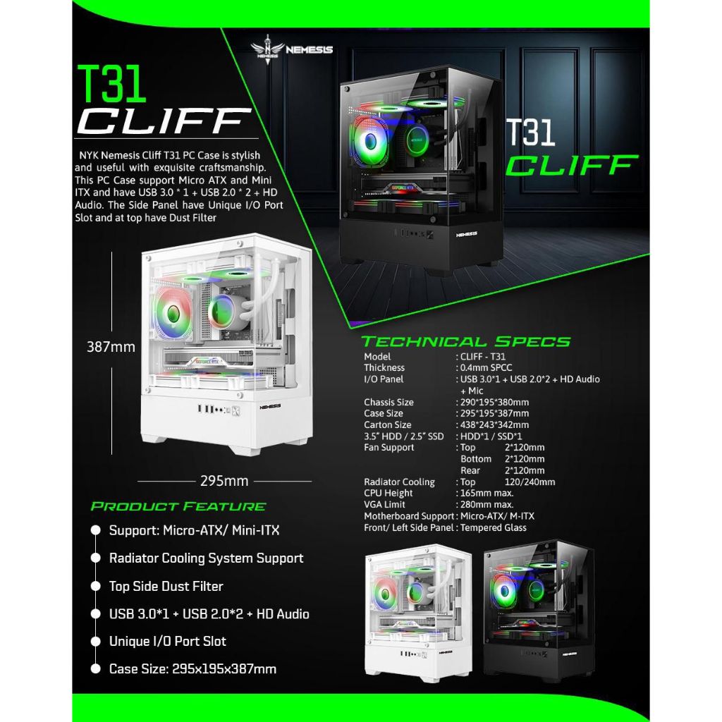 PC CASE / Cassing PC Gaming CLIFF T31 Nyk Nemesis M-ATX M-ITX