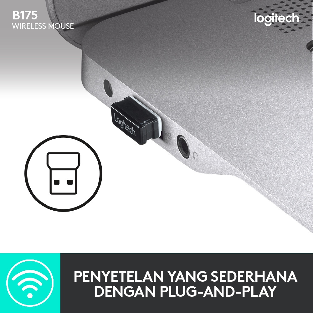 [HOT] Mouse Wireless Logitech B175 Ambidextrous 12 Bulan