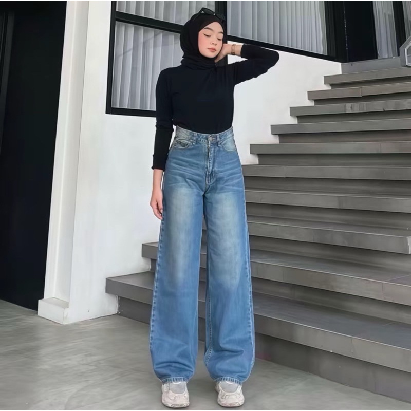 Highwaist oversize baggy loose jeans wanita - celana kulot jeans gombrong highwaist wanita - celana baggy jeans wanita