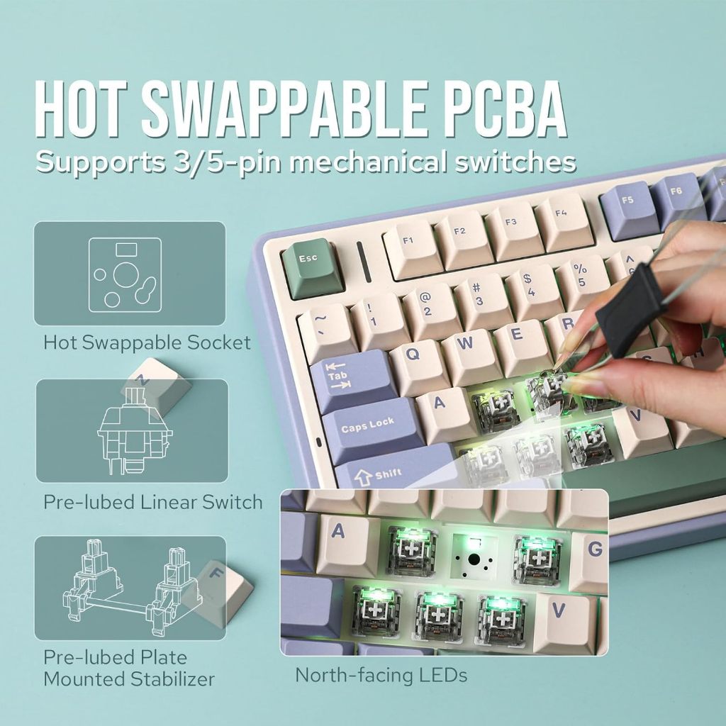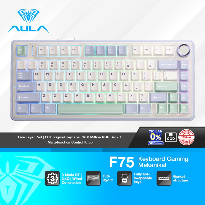 AULA F75 Mechanical Keyboard Gaming75 PERSEN | Snow Green, Tri-Mode, RGB, Reaper Switch, PBT Garansi 1 Tahun