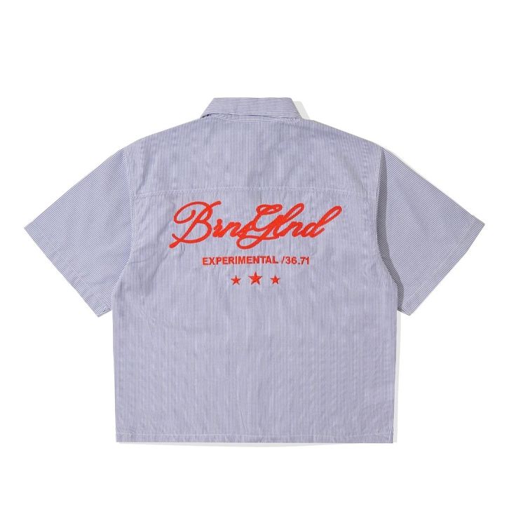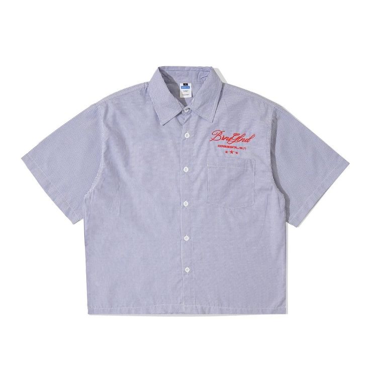 Kemeja Stripe Blue Unbrokeen Boxy Fit Brainsgland Atasan Pria Casual Kemeja Pria Casual Baju Pria Dewasa